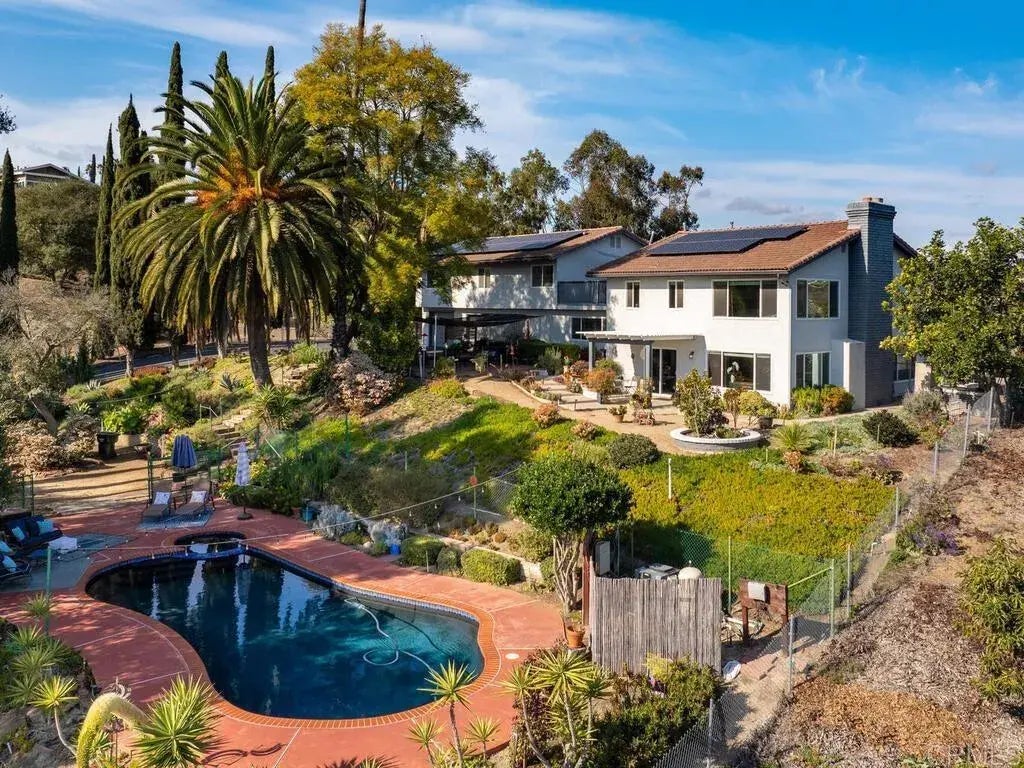 Why buy? 1. Six bedroom home with a main floor bedroom and full bath. 2. Separate three bedroom apartment with full kitchen, living room, and full bathroom that can be used as an Airbnb or rental ADU, 3. Fully paid solar, 4. Remodeled bathrooms and kitchen with quartz counters, white cabinets, and vinyl plank flooring, 5. Salt water black bottom pool and spa, 6. A large workshop in the 3rd car garage, 7. Fenced vegetable garden and multiple outdoor retreats, 8. Close to the Monserate winery, downtown Fallbrook, and wedding venues.