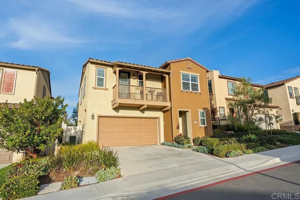 Welcome to an immaculate home in Arroyo Vista just approx. 15 minutes from the beach! This former builder MODEL, built in 2020, is an energy-efficient home WITH SOLAR (owned) and a premium flat lot locationoffering privacy with no neighbors behind. Low tax rate & No Mello Roos! EV Charging Pre-wired Outlet in 2 Car Garage. Recessed can lights on dimmers, throughout. Fm Rm Surround sound, designer window coverings & MORE - Light & Bright with all the bells & whistles! Gourmet kitchen boasts a spacious island, rich espresso maple cabinets, granite countertops, stainless steel appliances, a stylish subway tile backsplash, and a walk-in pantry. Additional features include a Dual-zoned Heat/AC, tankless water heater, ceiling fans in bedrooms and great room, and an upstairs outdoor balcony with serene views to the hillsperfect for unwinding in the evenings watching the sunset! The beautifully landscaped front and backyard w/ turf, irrigation, & solar lighting, offer easy low maintenance and a private retreat. Front yard is maintained by HOA. Spacious Primary bedroom, with no neighbors behind, dual sinks in bathroom, walk-in shower, & huge walk-in closet. Upstairs Laundry Room. Smart Thermostat and Garage Door (controlled by phone apps)! Spray Foam Insulation in every exterior wall and attic for energy savings and sound reduction! Enjoy resort-style amenities, with the community pool & BBQ's just across the street! Ideal for entertaining, the neighborhood also features a clubhouse, playground, and dog park. Located in the desirable San Marcos school district. All just 15 minutes f