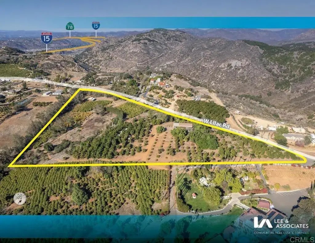 The subject property encompasses approximately 14.26 acres in Escondido and includes multiple structures, including a manufactured home, a barn, and a storage shed, as well as a guava, lemon and haas avocado grove. The mobile home, constructed in 1985, offers approximately 1,344 square feet of living space. Zoned Limited Agriculture (A70), the property permits a variety of agricultural, residential, and civic uses. It features expansive views of the Escondido mountains and the Pacific Ocean, offering a blend of functionality and natural appeal.
