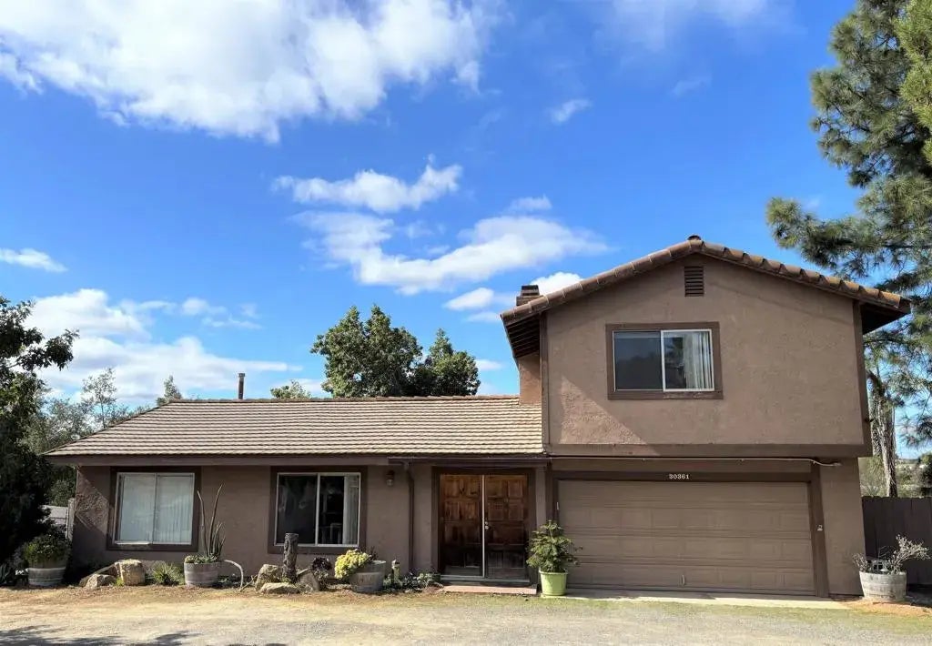 Country ranch living bring horses and live stock. 2.5 acres has arena , wash rack, tack room, feed room, water storage tank , fenced yard, two electric meters two water meters, two septics, work shop. All this with wonderful views and you can ride right to some of the best riding trails . The house is set up for the carefree life style with no frills but does have air conditioning. Fabulous views include the bucolic pasture and rolling hils from the front. The views from the rear provides scenic vistas includfing the small eucalyptus woods that the lucky buyer will own that abuts the turn out area.