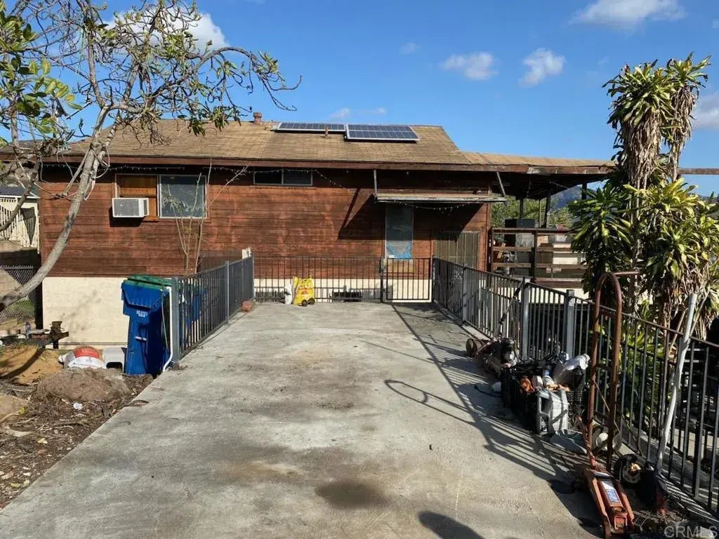 2 story house in Spring Valley with panoramic mountain views from large outdoor patio and living room. 2 car garage attached with 3 parking spaces in front and 3 parking spaces in back. Fireplace in living room. Laundry downstairs. 3 bedrooms and 2 bathrooms. Island in kitchen. On a cul de sac. 1500 square feet and .22 acre lot. 1 bedroom street level with ceiling fan. Solar on roof.