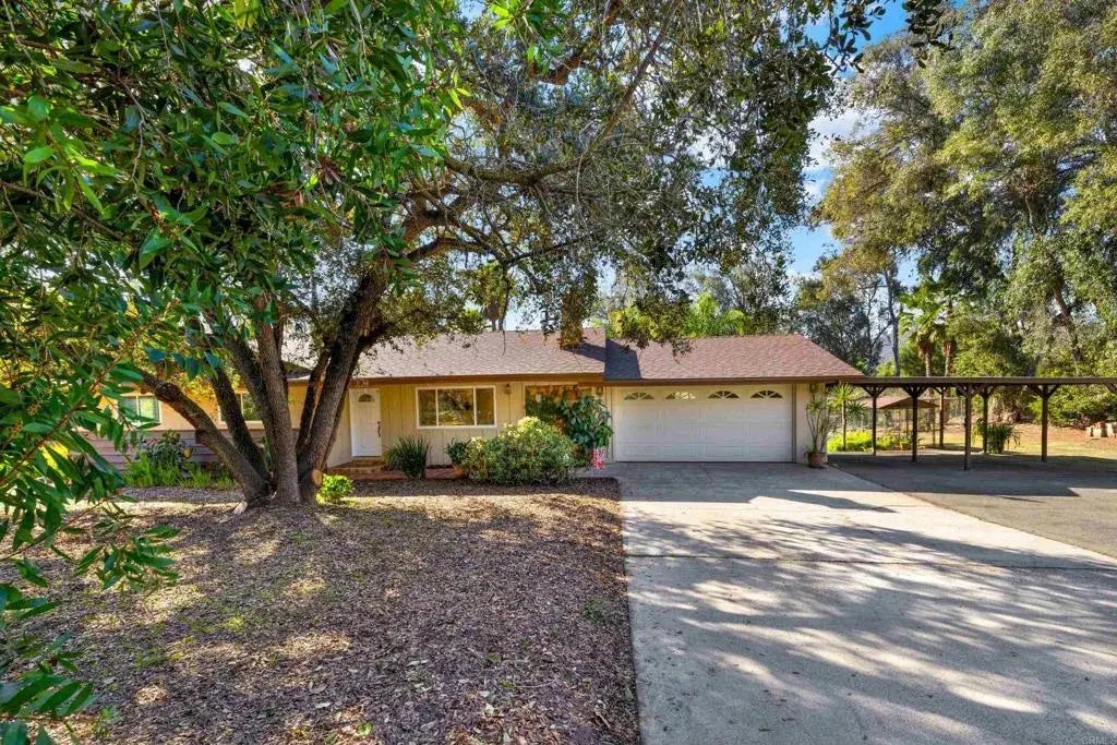 Price reduced...time to take another look! Have you always dreamt of living in the privacy of the country, but still close enough to shopping, transportation, and all of the citys best amenities? I promise, youre going to fall in LOVE with this one of a kind property and it's endless possibilities!!! A mini ranch or hobby farm with horse/s, chickens, livestock, etc.? Add an ADU or two for your Family compound or maybe for some added rental income? (But please check with County for current zoning and usage regulations) This move-in ready, single-story home features three good sized bedrooms, two full bathrooms and a bonus room that can be used as an office, playroom, sunroom, exercise room, etc.! Freshly painted inside and out and brand new high-quality laminate flooring installed within the last few weeks! The open floor plan features a big living room, dining room, and a stunning wood-burning floor to ceiling stone fireplace! And of course we have a generously sized country kitchen with plenty of cabinets, Corian counters, and all existing appliances are included! Youre gonna love the views of this gorgeous property, the surrounding foothills, and beautiful sunsets from your giant elevated and maintenance free back deck and partially covered patio! This super private location! The well established and wonderfully friendly neighborhood has no CCRs, no Mello Roos and no HOA dues! This large corner lot is fully fenced (electric gated) and surrounded by tons of mature trees, a dozen palm trees, and a large orchard with approximately 30 fruit and nut trees! And Just wait till y