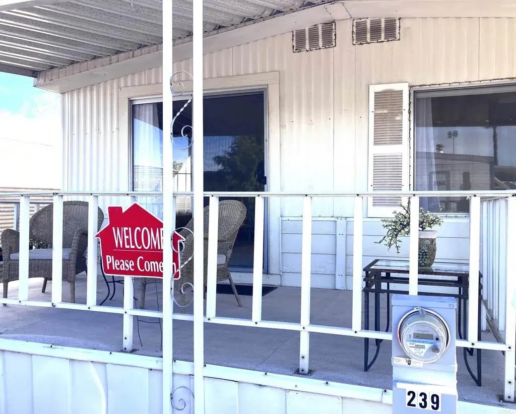 Welcome to Carefree Ranch 55+ Community. This Two Bedroom/Two Bath home has a comfortable kitchen, cozy dining area with a built in hutch, Indoor laundry and spacious living room. Light paneling throughout and newly installed beige carpet. Kitchen has a 5 burner gas range, barn style sink and newer Frigidaire oven. Central Heat and Air . Front covered porch offers relaxing mountain views. The park provides a clubhouse with a full modern kitchen, exercise room, billiards room, library, shuffleboard, community laundry, RV parking area ($25 monthly subject to availability), pool and spa. Go to Vons without crossing any streets. Priced to Sell! Hurry before it's too late.
