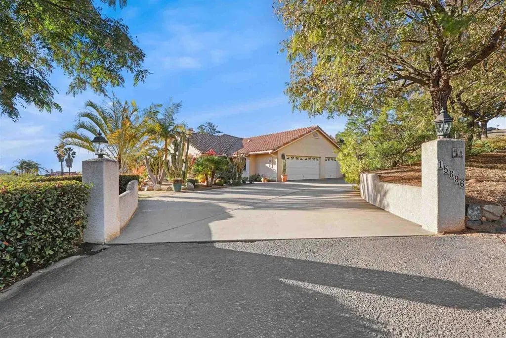 If you are looking for breathtaking panoramic views, this is your house! At an altitude of nearly 2000 ft, this property of 2702 sq/ft, which includes a detached studio of 384 sq/ft, can be found at the end of a private, tree-lined, paved driveway. It is situated on 2.81 acres of gently rolling park-like grounds dotted with various mature trees, including your personal olive grove with producing trees from France, Italy and Spain which you can leave alone or harvest to make your very own olive oil! Expansive, unobstructed views of the valley floor, hills, canyon and mountain are only matched by an equally impressive interior. Step inside this moving-in ready, single-story, very well appointed spacious 3 bedroom (4 bedrooms with the detached studio) 2 baths home which features a large primary with retreat area, wooden floors throughout and oversized rooms in an open floor plan. This energy-efficient home features a durable clay tile roof, dual-paned windows and an attic fan to help keep the home cool without running the air conditioning. The main living area features a huge great room combining a spacious kitchen, dining room and a living room with cathedral ceilings and a cozy wood-burning stone fireplace terrific for gathering! The renovated Chefs kitchen is an entertainers delight with over 36 ft of counter length and Wi-Fi ready appliances which include a triple oven with convection and steam features, matching smart electric cooktop, two microwave ovens, a bespoke fridge, two kitchen sinks, a kitchen island, a 13+ ft. long raised bar counter, and extensive cabinetry wit