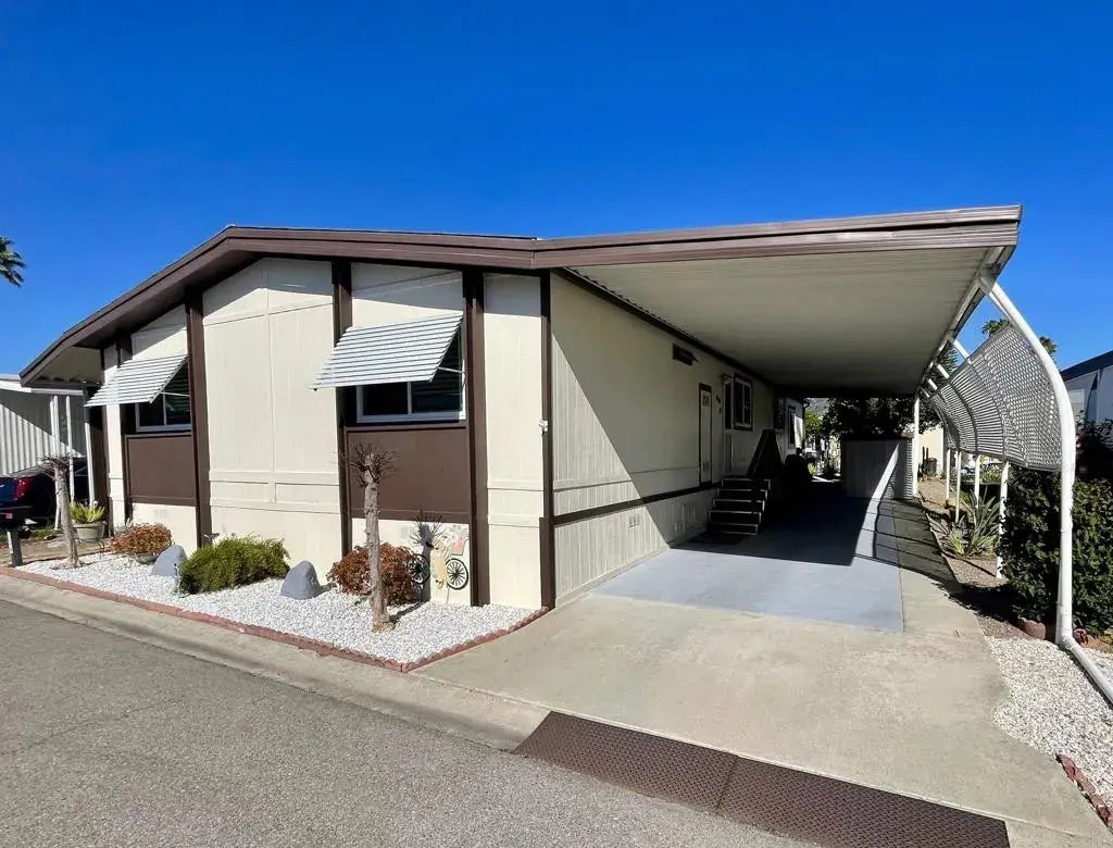 IMPROVED PRICE PLUS All BRAND NEW NEUTRAL WALLS IN LIVING ROOM, DINING ROOM, FAMILY ROOM AND PRIMARY SUITE. NO MORE DARK PANELING. SEE NEW PICTURES! RAERLY AVAILABLE 3 BEDROOM AT SUCH A WELCOMING PRICE! $40,000 Plus Of New Upgrades! Youve got to see this home! Remarkable home in 55+ complex! Super LOW $635/MO SPACE RENT WITH RENT CONTROL! Everything you could ever ask for is here plus with a great price too and in an AMAZING COMPLEX. New upgrades everywhere! $16,000 new roof. New $8,000 LVP flooring. New $3,000 water heater. New dual pane windows and sliding glass door. New Solatube. Huge kitchen with low breakfast bar which is for comfortable height chairs and all new lighting. All appliances included. Big indoor laundry room. Extra office area / desk not included in room count. Pass through double sided wood burning fireplace between separate living room and family room. Separate dining room. Newly painted inside and out. Owned alarm. Primary bath with soaking tub and separate shower. Valuted ceilings throughout! Rain gutters, A/C, ceiling fans, fruit trees & furnishing are even optional. Where can you find all this for this price and what else could you possible desire? THE PARK IS AMAZING! Common area amenities pictured in the listing; 2 pools, jacuzzi, social hall, library, card and music room, common area kitchen, 2 clubhouses, exercise room, shuffleboard & beautiful mature trees abound. What a great place to call home and get involved!