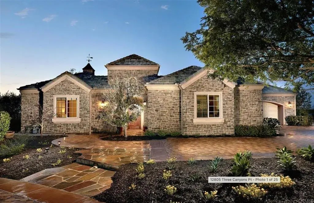 Single level McCullogh-Ames home situated on an elevated half-acre lot with views of canyon, hills & night lights. Gated and so private..This spectacular Del Mar Mesa home is 5,050 Sq/Ft of one-story living including 4BR/4.5BA, game room, office/library and bonus room. This special property boasts a private backyard with covered outdoor kitchen, pizza oven & bar surrounded by low water landscaping, fire ring, outdoor dining & spa.. relax and enjoy the incredible sunsets. This beautifully appointed home is warm & inviting. Casual yet elegant. Enter first through the private outdoor courtyard with an cozy custom stone fireplace .. the perfect retreat. Passing the main front door threshold, transition to relaxed elegance with beautiful hardwood floors, wainscoting, exposed beam ceilings, solid wood doors, large crown molding and 6'' baseboards throughout. The foyer leads past a private dining room perfect for large formal dining, Spacious Great room and Chef's kitchen with custom cabinetry, granite counter-tops with decorative travertine back-splash, a large center island, stainless steel appliances including: side by side GE Monogram refrigerator/freezer, Dacor double ovens & 6-burner cook-top, two Bosch dishwashers, built-in wine refrigerator plus a built-in desk/buffet in a large informal dining nook. The kitchen opens to a large family room with inviting fireplace and views to the entertaining backyard with covered outdoor kitchen, pizza oven & bar which is surrounded by beautiful low-water landscaping, outdoor dining & gathering spaces including a built-in fire ring and h