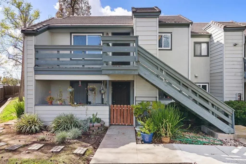 VA approved! This fantastic upstairs corner unit condo boasts 2 bedrooms and 2 bathrooms, complete with a convenient in-unit side-by-side washer and dryer. The home features a bright, open floorplan with vaulted ceilings in the family room, updated flooring, and several recent upgrades, including a new A/C and heating system, ducting, refrigerator, dishwasher, washer and dryer, and blown insulation in the attic. Fresh baseboards in family room add a modern touch. Spacious storage closet at the front patio. You'll also enjoy two assigned parking spaces. Monthly HOA fee includes water. Pet friendly community! The community also offers a spacious pool, jacuzzi, and BBQ area, perfect for relaxation. Ideally located near shopping, restaurants, schools, highways, beaches, and San Diegos top attractions, this condo is a must-see! Dont miss out!