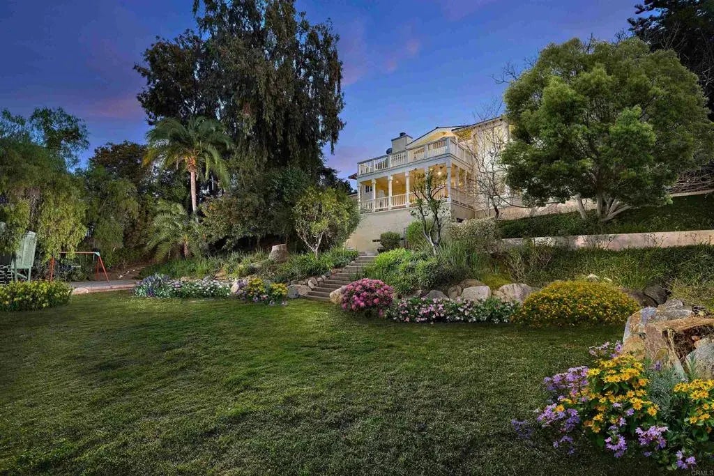 Nestled near the end of a tranquil cul-de-sac in the heart of Rancho Santa Fe's Covenant, this classic ranch-style residence offers 4,534 square feet of main-floor living on a picturesque one-acre lot with pastoral views. The thoughtfully designed floor plan features five bedrooms and 4.5 bathrooms, including a primary suite and a secondary bedroom on the main level, complemented by a dedicated office, a spacious great room, and an inviting dining room. Throughout the main level, gorgeous, engineered wood floors add a touch of elegance, seamlessly blending style with durability. The two main-level bedrooms feature plush carpeting for added comfort. The charming kitchen, equipped with stainless steel appliances and ample storage, adjoins a cozy breakfast nook. The lower level accommodates three additional bedroomsone ensuite and two sharing a bathalongside a generous bonus room ideal for a playroom, media lounge, gym, or versatile space. High ceilings, two fireplaces, exceptional storage, and two expansive decks enhance the home's appeal. The upper deck is newly waterproofed and the lower deck features Ipe wood.The property boasts a distinctive circular driveway with dual access points, abundant parking, and a three-car garage. The expansive backyard features lush lawns, vibrant gardens, and ample space for future amenities. Residents enjoy direct access to 60 miles of Covenant walking trails and are served by the esteemed Roger Rowe Elementary and Middle School (K-8) and the San Dieguito School District. This serene and private location epitomizes the quintessential Rancho