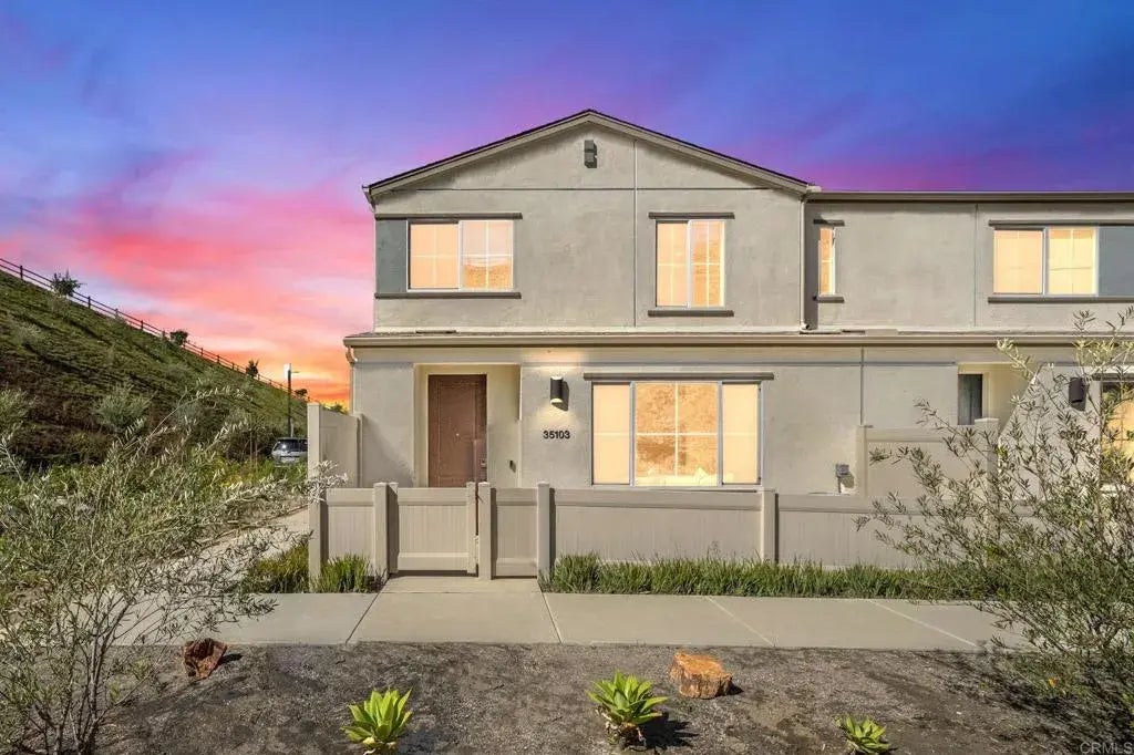 Welcome to 35103 Lemongrass Lane in the beautiful Citro Community. This is the "Meyer Plan 4" unit. It offers a modern 3 bedroom, 2.5 bathroom home with 1,480 square feet of living space, a loft/bonus room and 2 car attached garage. Positioned on a PRIVATE CORNER LOT, this residence boasts PAID SOLAR panels, enhancing energy efficiency. Enjoy easy access to the 15 and 76 freeways, making commuting a breeze. The spacious interiors are perfect for both entertaining and relaxing. Dont miss the chance to own this serene and stylish home. Schedule a viewing today! First showings begin this weekend! Open House Saturday & Sunday, March 8-9 from 11am-3pm. See you there!