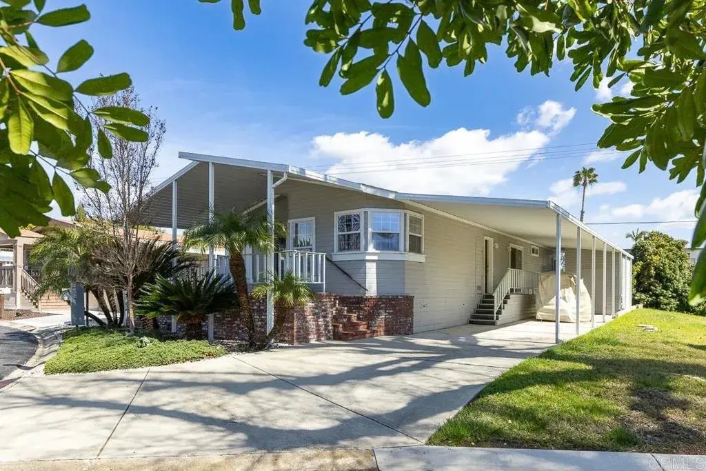 Welcome to Rancho Escondido, a gated 55+ community! This Hallmark (which has been touted as one of the best) manufactured home was custom ordered by the current owners in 2002. It sits on a corner lot with views to the West over the parks greenbelt and beautiful trees. Enjoy sitting on the large, covered deck at the front of the home to catch the views and maybe a sunset or two! Walk to the main clubhouse and pool area, its just steps away, here you will find the library, card room, main community room, where most of the activities are hosted like dinners, Bunko, Hamburger fry, Happy hour, Billiards and more! Need or want a 3rd bedroom or office? This home has a 3rd room besides the large master suite and bedroom 2! The Kitchen has an island, lots of cabinets and a breakfast nook area. Formal dining is open to the main living area. Light and bright, has lots of windows, French doors and high ceilings. Your avocado tree is the envy of neighbors!!! The park is conveniently located to medical, shopping, public transportation and eateries.