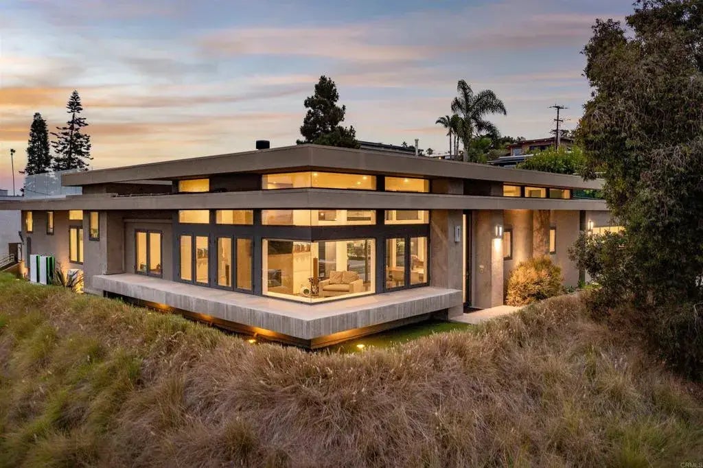 Indulge in coastal living at its finest with this stunning Ocean View Contemporary home, located on a spacious corner lot. Designed by a renowned local architect, this custom-built residence offers 3 bedrooms, 2.5 baths, and a separate 1-bedroom, 1-bath casita, perfect for guest quarters or a private office. Upon entering, you are greeted by soaring ceilings and expansive walls of windows that frame breathtaking ocean and sunset views. The open-concept great room features a cozy fireplace, ideal for relaxation, while the designer kitchen is a chef's dreamequipped with a Wolf 6-burner range, Sub-Zero fridge, dual European dishwashers, and custom cabinetry, with plenty of counter space for meal prep and entertaining. Polished limestone floors flow throughout the home, enhancing the sophisticated ambiance. The private primary suite is a serene retreat, complete with a fireplace and an overflow sunken tub to unwind while enjoying the ocean breeze. A tankless water heater ensures you can enjoy long, luxurious showers at any time, and radiant floor heating adds warmth and comfort throughout the home. Step outside to your own private oasis, which includes a heated swimming/lap pool and jacuzzi with swim jets and waterfall, a fully-equipped outdoor kitchen with BBQ, and two outdoor showers for ultimate relaxation. The property also features a complete audio-video system with indoor and outdoor sound, ensuring the perfect atmosphere for any occasion. Enjoy eco-friendly living with full-house solar panels, a car charging station and four powerwalls to provide backup power for the mai