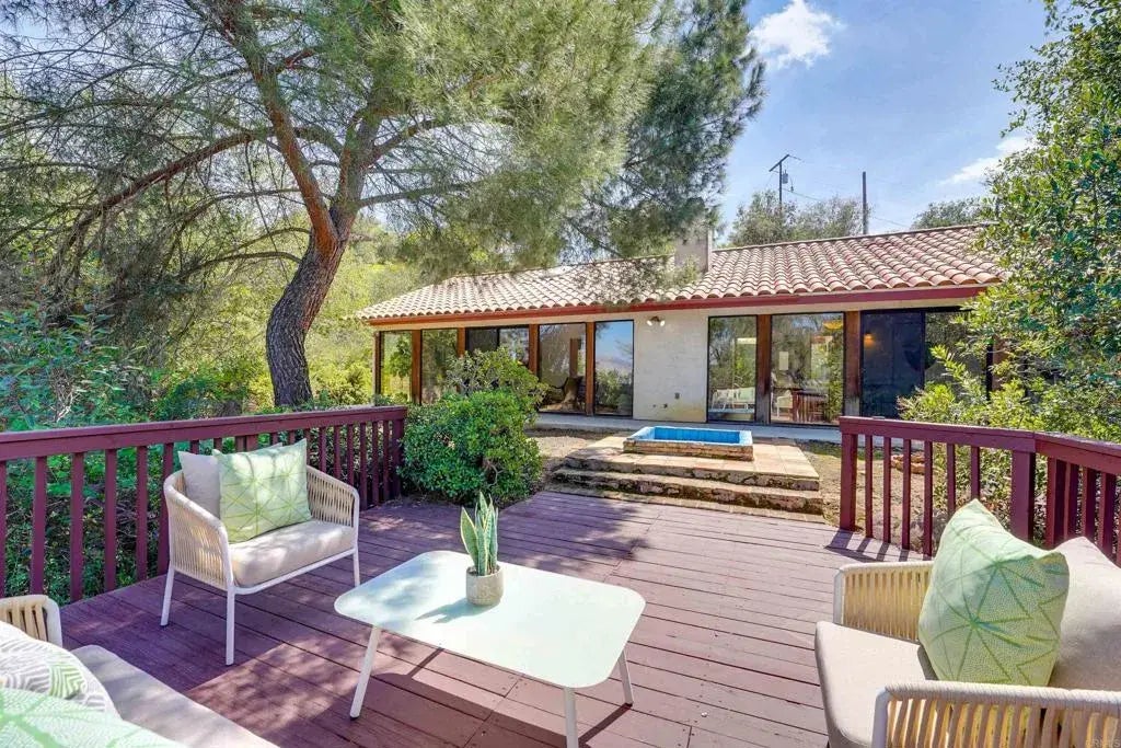 Tucked away on a peaceful .91-acre lot, this hillside retreat offers sweeping mountain and valley views from its elevated perch. A stunning wall of windows brings the outdoors in, flooding the open living area with natural light and showcasing the ever-changing beauty of the landscape. Vaulted natural wood ceilings add a sense of warmth and tranquility to the airy interior. At the heart of the home, a dual-sided fireplace provides cozy ambiance for both the inviting living room and the adjacent dining areaperfect for entertaining or quiet evenings in. The spacious kitchen features granite countertops and generous workspace, ideal for culinary creativity. A separate laundry room adds everyday convenience. The primary suite is a restful haven, filled with soft light and featuring high ceilings and a luxurious en-suite bath with a Roman-style tub and walk-in shower. The two bedrooms open onto a charming tiled courtyard-style patioa private, peaceful spot to enjoy your morning coffee or unwind at the end of the day. A generous view deck extends off the main living area, offering a spectacular vantage point for sunrise reflections or sunset gatherings. The expansive rear yard provides ample space for a garden, pool, spa, or future outdoor entertaining areas. Additional features include a dog kennel, storage shed, and plenty of room to grow. Recent upgrades include a new roof, ductless mini-split heat & AC units, and all-new concrete driveway and walkways. With nearly an acre of land and additional street-level access from the lower portion of the lot, the possibilities here are