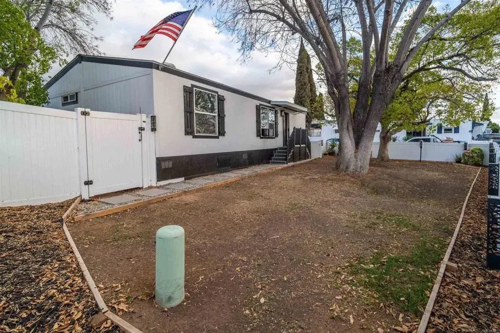 Move in ready, affordable home with a HUGE yard! Welcome to this 2023 gorgeous 3-bedroom, 2-bathroom manufactured home, perfectly situated in a well-maintained all-age community in El Cajon, CA. Nestled on one of the biggest lots, this home offers an expansive yard with vinyl fencing, ideal for outdoor entertaining, gardening, or simply relaxing. Step inside to a bright and airy open floor plan, where the spacious living and dining areas are bathed in natural light. The kitchen features ample cabinet space, a convenient breakfast bar, and plenty of room to cook and gather. Adjacent to the kitchen, a generously sized utility room provides space for your washer and dryer. The primary suite is complete with a mirrored wardrobe closet plus another large closet and an ensuite bathroom featuring dual vanities and a walk-in shower. The additional bedrooms are equally inviting, with large windows and energy-efficient dual-pane vinyl windows. Enjoy all the amenities this well-kept community has to offer, including a swimming pool, relaxing spa, clubhouse, RV and boat storage, and a coin laundry facility for larger loads. Truly a must see! #manufacturedhome #newhome #mobilehomepark #affordablehousing #elcajon #homesforsalewithayard