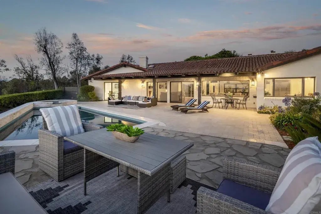 OFFERED UNFURNISHED, $22,800 OR FURNISHED, $24,800. Extraordinary opportunity to lease this single level, ocean view home located on a hillside setting in Rancho Santa Fes exclusive west-side Covenant. Overlooking a sanctuary of natural beauty and tranquility this spacious, single-level, custom estate boasts an extensive new remodel showcasing a fusion of modern aesthetics with the timeless charm of a Spanish ranch. The expansive ocean views are captured by nearly all indoor and outdoor living spaces creating a one-with-nature vibe that embellishes entertaining and daily living while enjoying the benefits of a sprawling one-level design. Hosting four + en suite bedrooms, four-and one-half baths, lounge/retreat, ocean-view library/study, formal dining room, and a living room/great room with soaring, vaulted wood ceilings and dramatic new fireplace complemented by wide-plank white oak flooring throughout. The envy of professional and aspiring chefs alike, a gorgeous new kitchen shines with quartz countertops, an oversized island with a waterfall edge, custom cabinetry and top-tier appliances are highlighted by the picturesque ocean views. Relax in a sumptuous primary suite that opens to a private courtyard patio and features a beautiful master bath drenched in white marble and sunlight with a freestanding tub and walk-in closet. Easy single level living with NO steps! Conveniently located near Rancho Santa Fe's vibrant village and highly rated private and public schools. Enjoy close proximity to miles of scenic beaches, recreational activities, shopping and so much more.
