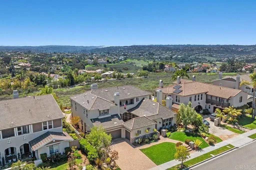 Welcome to the iconic 7599 Circulo Sequoia, nestled in the heart of La Costa Oaks South. This spacious 5-bedroom, 3.5-bathroom home, with 4,000 sqft of luxurious living space, boasts one of the most coveted floorplans in the neighborhood. Situated in the serene hills of Carlsbad, it seamlessly blends luxury and comfort, offering breathtaking unobstructed southwesterly views and stunning sunsets every day. Built in 2005 by Davidson, this meticulously maintained home features an open, airy layout ideal for both daily living and entertaining. The chefs kitchen is a dream, equipped with a Sub-Zero refrigerator/freezer, KitchenAid appliances including a gas stove with 6 burners, double ovens, dishwasher, and microwave, along with a large center island. Meticulously maintained by these phenomenal original owners, the home also includes a convenient downstairs bedroom with an en-suite, an inviting interior courtyard, and plenty of space for indoor-outdoor living. The spacious primary suite is a true retreat, featuring a private balcony with sweeping views overlooking some of the most beautiful landscapes in Carlsbad. Step outside, and youll find an entertainers paradise. The property boasts Belgard Dublin Toscana pavers, creating a cohesive flow throughout the grounds. The courtyard includes a stunning Porcelanosa tile wall with a wall fountain, and the backyard features a 3-level circular standing fountain. Two Alumawood pergolas provide both shade and charm. Enjoy outdoor games on the 60 x 9 artificial turf bocce ball court, or gather around the gas fire bowl. The outdoor island