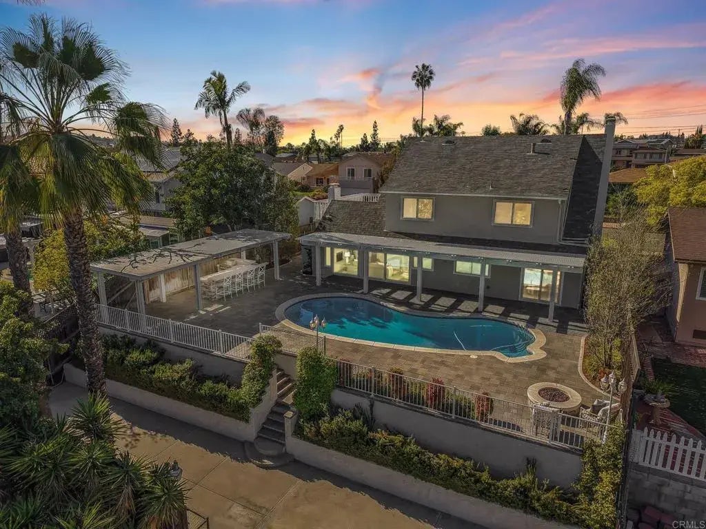 Just a block from Lake Murrays scenic trails, this reimagined 5-bed, 3-bath stunner blends modern luxury with indoor-outdoor living. The functional layout features a showstopping kitchen with quartz counters, smart stainless appliances, and custom cabinetry. Enjoy enchanting canyon views from the living areas, soak in the sun from the rooftop deck, or unwind in your private backyard oasis overlooking the canyon and trails with a sparkling pool, firepit, built-in BBQ bar, and play area. With a downstairs guest suite, spa-like primary bath, new HVAC, and luxury finishes throughout, this home delivers elevated style in a quiet, sophisticated neighborhood in La Mesa.