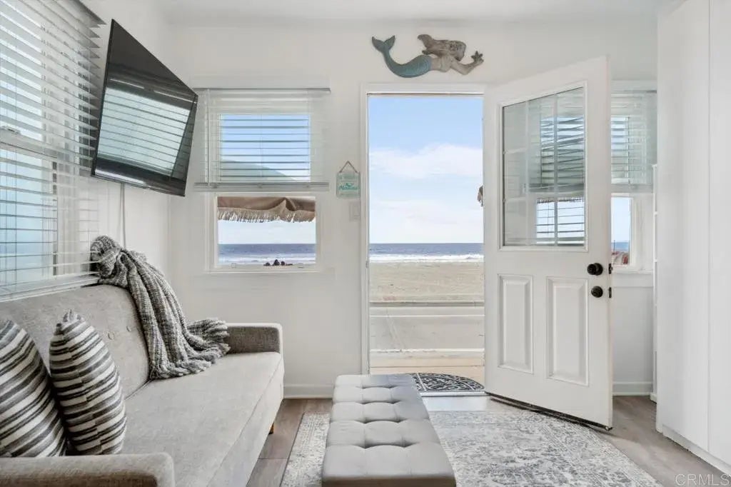 ICONIC BEACHFRONT BUNGALOW! Featuring Jaw Dropping Unobstructed Panoramic Beach and Coastal Views, this absolutely adorable cottage has a wonderful and storied history that dates back almost 100 years. This is a truly unique and darling home that features newer flooring, stove, paint and updated windows and exudes a beachy, relaxing California vibe. Enchanting and picture perfect, Cottage 9 is right on the sand and has been lovingly maintained and enjoyed by the same family for over 50 years. These special homes rarely come on the market and offer a unique opportunity to buy an affordable oceanfront home that can be used as a vacation destination, second home as well as a terrific short term rental property. Ideally located just north of the Oceanside Pier, this property offers wide sandy beaches that are perfect for a fun day at the beach, relaxing ocean walks, and spectacular sunset views just steps from your porch! Home has a comfy queen sized Murphy bed to optimize space, a delightful full kitchen, a spacious outside seating area, secure storage space and simply the best views in town! Roberts Cottages offer the charm of yesteryear, a perfect beach location, coupled with the fun buzz of hip and happening Oceanside. Sit inside your cozy home or relax outside on your private oceanfront porch and watch the world go by: classic vintage cruisers, bikes, and pedestrians with the beautiful Pacific Ocean and crashing waves as your backdrop. Assigned and guest parking on the property. Price includes furnishings for a truly turnkey opportunity. Simply Divine. Don't Miss This Cute