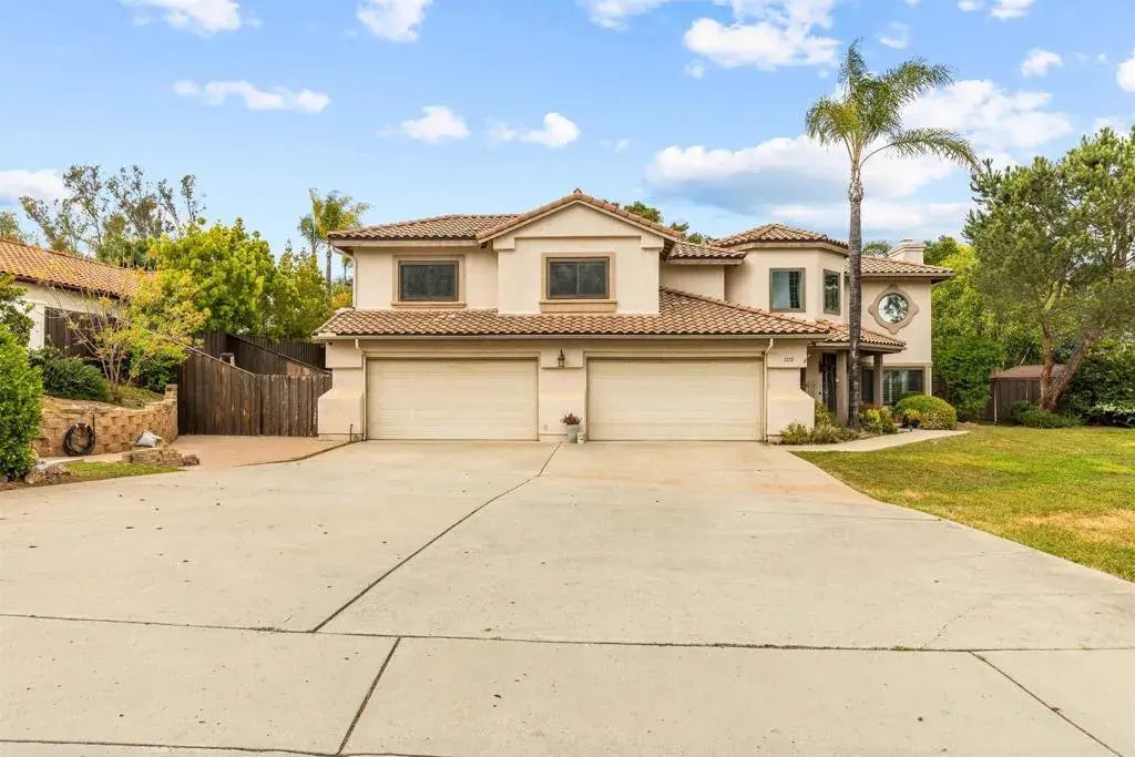 Welcome to Carriage Hills in Southwest Escondido, a stunning neighborhood of executive homes on large lots. This 3,484 SF two story home features 4 oversized bedrooms and 3 baths, a 4 car attached garage on .48 acre flat useable lot in a cul-de-sac. Once inside the grand entry with high ceilings bring in lots of natural lighting. The large living room/dining room and great room plus built in bar area is a perfect spot to enjoy family gatherings and entertain guests. all bedrooms are upstairs, the primary suite has private balcony overlooking views, secondary bedrooms are large. The back yard is perfectally set up to enjoy the large pool with raised jacuzzi, firepit, separate security pool fencing. Inside newer appliances, some newer windows, newer water heater, roof replaced in 2017, fully owned 32 Panels, 10.464KW Solar System, Modules: SunPower SPR-327NE-WHT-D, Inverters SolarEdge Power Optimizers. No one behind you. Close to Hwy 15, shopping, schools, parks and Lake Hodges, easy access to beaches, San Diego Airport and many attractions.