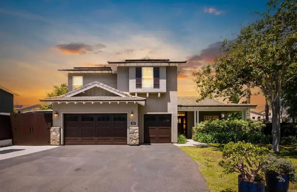 GORGEOUS CRAFTSMAN with a HUGE OPEN BACKYARD offers plenty of room for a future ADU and a Pool. The private driveway leads to a 3 CAR GARAGE, side custom Tandem carport and sitting Porch. This stunning Craftsman-style 5 Bedroom, 3 Bath home features a 24 Panel - Owned SOLAR, a Tankless Water Heater and loads of CUSTOM FEATURES! The home includes a BEDROOM & BATH DOWNSTAIRS with multiple options for guests or an OFFICE. The Chef's GOURMET CENTER ISLAND GRANITE KITCHEN is equipped with high-end MONOGRAM and VIKING appliances with a 6-burner cooktop, three ovens and a pot faucet. From the moment you enter through the Craftsman front door, the hardwood floors, vaulted ceilings, DRAMATIC STAIRWELL and NEW CARPET will tell you YOU ARE HOME! Custom solid wood Craftsman doors and cabinetry throughout! The primary suite boasts a cozy RETREAT, balcony, a 3-SIDED FIREPLACE, a huge 6-head CUSTOM SHOWER, dbl sinks, make-up vanity, bidet, SPA TUB, Skylights and large walk-in closet. The family room features a stone fireplace with built-ins, crown moldings and surround sound stereo. The Laundry Room features a sink and built in cabinets. The property is ideally located close to schools and less than a mile and a half to the beach. Carlsbad Village shopping and beaches are also in close proximity! Sit back and enjoy the ocean breezes and coastal living!