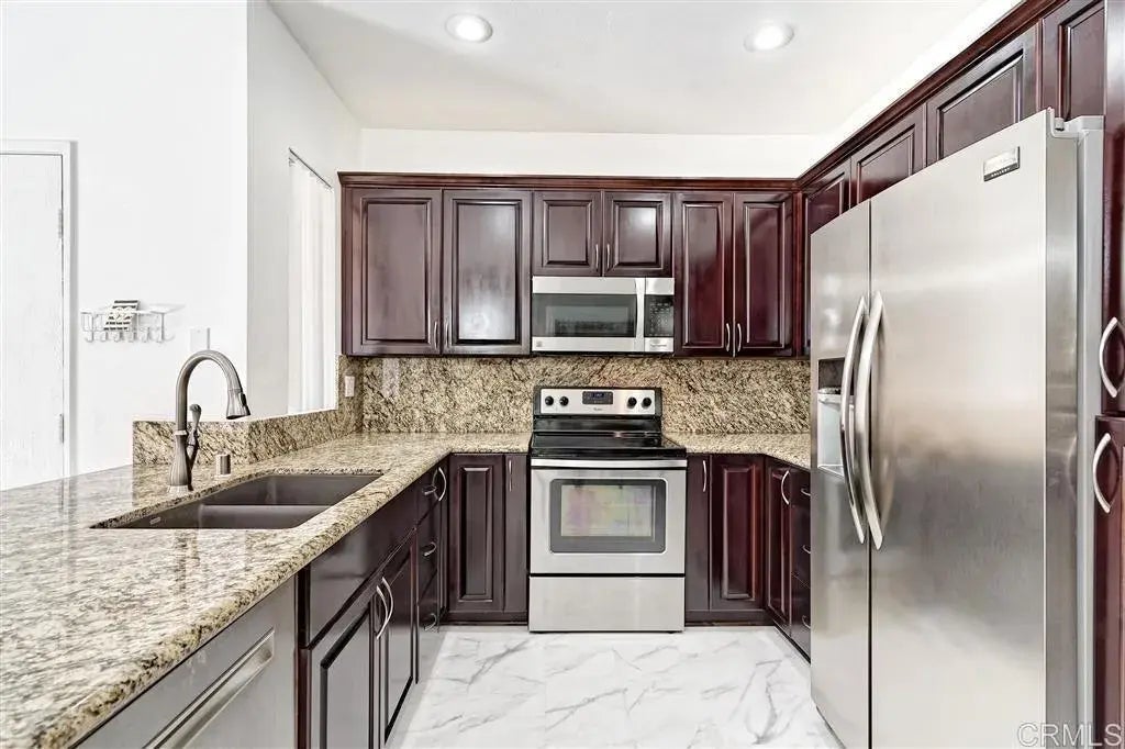 Modern and updated 1 bedroom home featuring high ceilings and peaceful surroundings. This unit is clean and fresh. Modern ceiling fans for when you don't feel like running the AC. The remodeled kitchen is pristine! Granite counters, beautiful dark wood cabinetry, stainless steel appliances, and a gorgeous sink complement the home beautifully. You have a sunny patio to enjoy the tranquil outdoors and hear the birds chirping. In the living room, you have a convenient TV mount provided for you on the wall. Just bring your TV! Your master bedroom is large and features a walk in closet. The spacious bathroom is equipped with ample counter space and a relaxing shower. The Summit is a stunning community surrounded by picturesque mountains, hiking trails, and ultimate convenience - Palomar College, Top Rated Public Schools, and beautiful shopping centers. You also have access to two resort style pools, tennis courts, and gym. Call today!