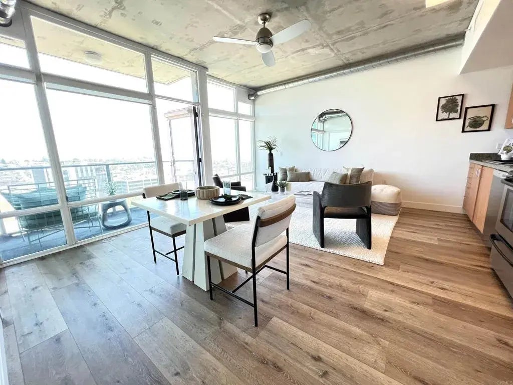 Seller to accept offers subject to cancellation of the current escrow. Enjoy the San Diego downtown lifestyle from this open and vibrant 15th level condo with floor-to-ceiling windows offering sweeping easterly views including the Coronado bridge. This industrial-chic design with concrete accents and exposed ducting features a separate bedroom with custom closet, roll-down shades, private balcony, new laminate wood flooring, granite counter tops, Frigidaire stainless steel appliances, Bosch dishwasher, Aquasana water filtration system, stacked washer/dryer and electric Brondell bidet/tiolet. Amenities include on-site fitness center with showers/bathrooms, a rooftop entertaining area with lounge chairs, two barbeques with prep sink/area, and open spa over looking most of the city. Easy to access to I-163, I-5 and I-94 freeways and just steps to the trolley station. Short drive to the San Diego Airport and just one block walk to City College. Close proximity to dining hot spots in downtown Gaslamp, Barrio Logan, Little Italy or South Park areas as well as SD's own paramont Petco Stadium and Balboa Park. This condo has one assigned parking space within gated parking and 24 hour secure building access.