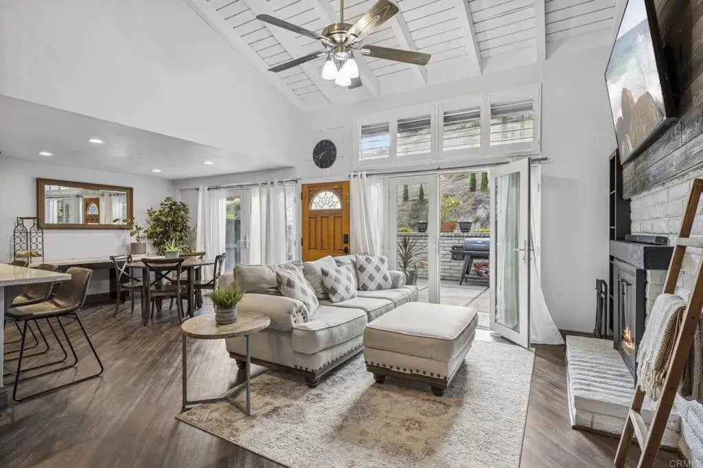 Discover the inviting charm of Fallbrook in this beautifully maintained villa, ideally situated in a quaint small-town setting. Stroll to the renowned Monserate Vineyard and Winery or explore local parks, golf courses, and the vibrant Fallbrook Art Centerjust minutes from your doorstep. Enjoy easy access to the beach, mountains, and major highways (Hwy 15 and Hwy 76), making this a truly central location. Step into your gourmet chefs kitchen, complete with stunning quartz countertops, a double oven, custom cabinetry, all appliances, a spacious pantry, a butlers pantry, and a built-in desk ideal for working from homeconveniently located next to the elegant dining room. The cozy family room is filled with natural light and features soaring vaulted wood ceilings and a dramatic gas or wood-burning fireplace, perfect for relaxing evenings. Downstairs, youll find a stylish powder room for guests and an indoor laundry room with a custom barn door. Upstairs, the spacious primary suite includes an en-suite bathroom, while the second bedroom also offers its own bathroom. A versatile 200 sq. ft. loft provides extra space (not included in the official square footage). Throughout the home, ceiling fans ensure year-round comfort. Additional highlights include a two-car garage, a front patio to soak up the sun, or enjoying your garden, and a low $350/month HOA fee that covers water, sewer, and trash. Plus, the roof was recently replaced just two years ago. Experience the warmth and care of this lovely villayour perfect Fallbrook retreat awaits!