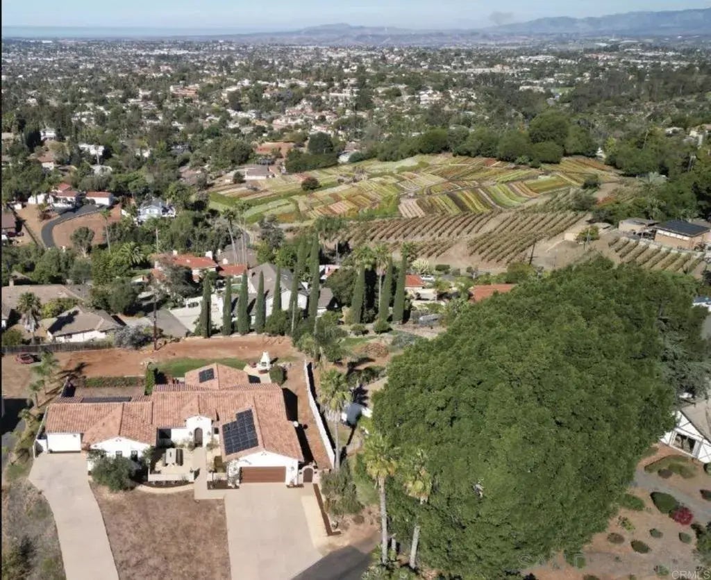 Tucked into the scenic foothills of Vista on over half an acre, this custom-built contemporary Spanish retreat offers the kind of California lifestyle dreams are made of. Completed in 2019, the single-level main home (3 bed, 3 bath) pairs clean, modern luxury with timeless charactersoaring 10-foot ceilings, sleek stained concrete floors, and walls of glass that bathe every room in natural light. The heart of the home is a chefs kitchen built for connection, complete with high-end finishes and seamless indoor-outdoor flow. Open the custom La Cantina doors to extend your living space onto the west-facing patioperfect for al fresco dinners, weekend gatherings, and golden-hour sunsets. A completely separate 2-bed, 2-bath ADU (980 sq ft) offers its own driveway, garage, and private yardideal for multi-gen living, long-term guests, or added income. Thoughtfully designed, it feels like its own home. Fully owned solar, space to roam, park, and playwhether thats adding a pool, growing your dream garden, or parking your RV or boatthis property has it all. Just 5 minutes from downtown Vistas buzzing food, craft beer, and arts scene, and a short drive to the beaches of Oceanside and Carlsbad, this home checks every box for vibrant Southern California living. Come experience the views, the space, the flexibilityand the freedom to live beautifully.