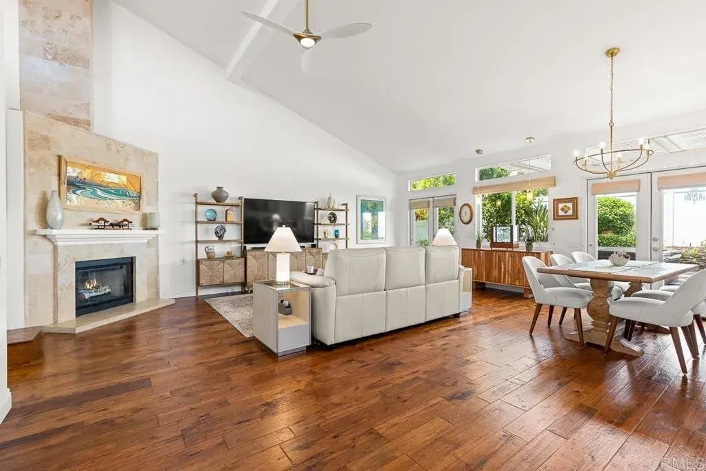 This beautiful move-in-ready, fully upgraded light bright single-level living home has the largest and most desired floor plan on a spacious pie-shaped lot perfect for entertaining in this gated 55+ community. It features a large great room with fireplace and high vaulted ceilings, 2 bedrooms with plantation shutters, and 2 full travertine baths on the main floor, a generous loft upstairs, often used as an office or an additional bedroom, central air conditioning and a whole-house-fan. The home has been completely upgraded with rich engineered hardwood floors, granite and newer cabinets in kitchen and bathrooms, stainless steel appliances, new paint and more. The kitchen has a profusion of natural light and affords beautiful green garden views. Three upgraded French doors connect you to the covered patio, hot tub and paver lined, beautifully manicured entertaining area. There is ample storage in the attached 2-car epoxy coated garage. Completely new roof in 2024. Conveniently located with easy 78 and I-5 freeway access, Making travel to San Diego, Orange County or LA easy. Youre also just minutes away from healthcare, your favorite stores, restaurants and just 4 miles to the beach. Mira Costa College is within walking distance for those who wish to join their lifelong learning programs. The Villa Trieste 55+ community is located in a world-class coastal climate, lies outside of the very high fire severity zone, keeping insurance costs low, is comprised of just 150 homes with lower HOA fees. The monthly HOA fees cover the gated entrance, roof, exterior, common area landscapi