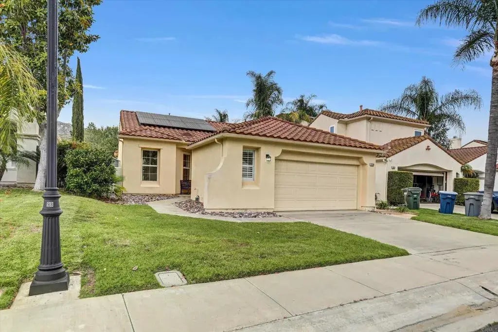 2318 Fallbrook Place is a charming residence nestled within the desirable gated community of Rancho San Pasqual in Escondido, California. This inviting home features three spacious bedrooms and two well-appointed baths, making it an ideal choice for families or those seeking extra room for guests or a home office. The layout of the home is both functional and aesthetically pleasing, with an open concept design that seamlessly integrates the living, dining, and kitchen areas, allowing for effortless entertaining and family gatherings. Large windows throughout the home invite natural light, enhancing the warm and welcoming atmosphere. The kitchen is equipped with modern appliances, ample cabinet space, and a breakfast bar, making it a joy for both seasoned chefs and casual cooks alike. The master suite serves as a tranquil retreat, complete with an en-suite bathroom that features dual sinks, a soaking tub, and a separate shower, providing a perfect escape at the end of the day. The additional bedrooms are generously sized, ensuring comfort and privacy for family members or guests. Two car garage has electric charger and home is on solar. Outside, residents can enjoy the beautifully landscaped yard, which offers a serene space for relaxation or outdoor activities. The gated community of Rancho San Pasqual provides an added layer of security and exclusivity, along with amenities such as walking trails, parks, and a community pool, golf course, clubhouse, fostering a sense of community among neighbors. Located in Escondido, this home is conveniently situated near shopping center