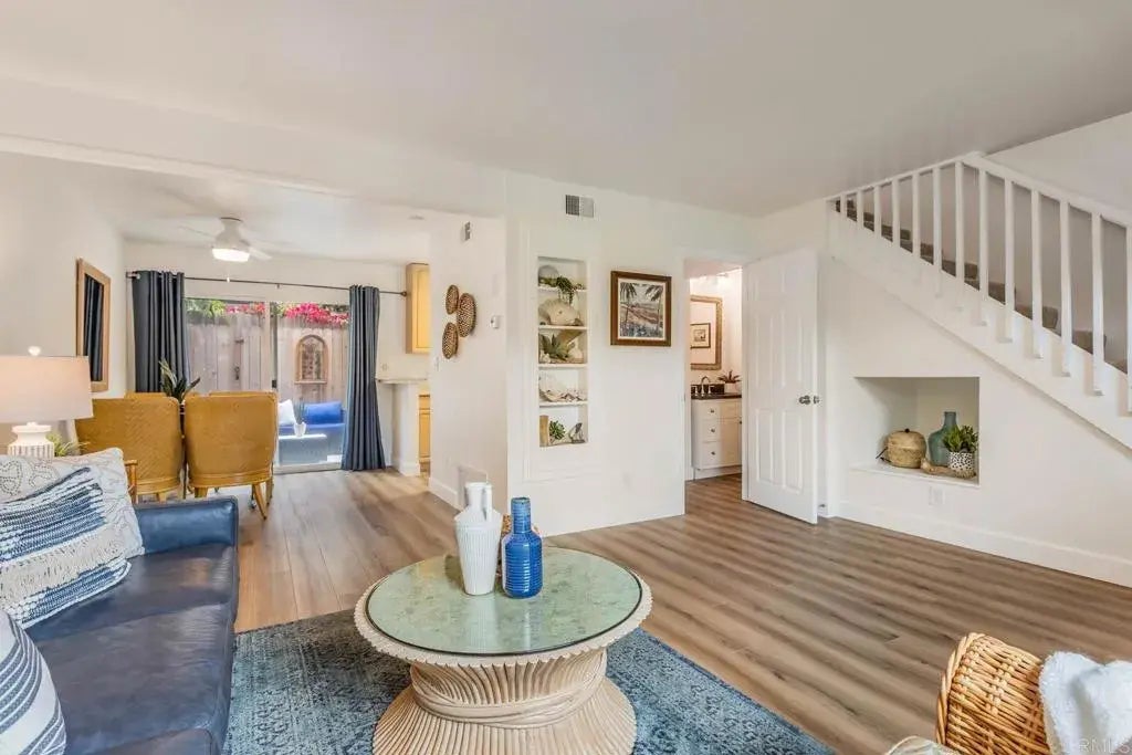 This is the least expensive 2-bedroom unit west of 101 in Solana Beach. Charming and turn-key with newly updated kitchen and bathrooms, all new flooring throughout, new baseboards, and new paint. The unit has a 1-car detached garage plus a space and has ample daytime parking directly next to the unit. The entire complex has recently also been completely refurbished. You can't beat this location. It's just a short stroll to the stairs that take you to the gorgeous white sandy beach, and it's also within walking distance to excellent restaurants, shopping, the track and the train station. This property offers you everything one needs for ultimate beach living, with an abundance of activities nearby that one can enjoy year around! Furnishings are negotiable and mostly all new!