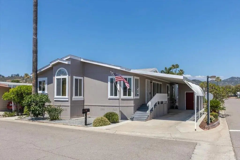 Beautiful, newer home located on a corner lot in the center of Imperial Mobile Estates; a clean, well kept 55+ community with rent control. Big Island Kitchen with double pantries, pull outs, 5 burner stove, lots of natural light from the skylight & a cheerful breakfast nook. Off of the Kitchen is a spacious Laundry room with extra space for a freezer. There is a formal Dining room as well as a large Living room with a dormer window that lets in plenty more natural light! The Den makes a great office or guest room. The Primary Suite has a large walk in closet, barn door, dual sinks, and generous linen closet. This home also boasts a tankless water heater and new exterior paint. Central A/C + 4 ceiling fans. Outside, there is a large covered patio, storage shed, and 2 citrus trees, a fig tree, grapes, boysenberry and an established plumeria. The carport has conveniently been widened and offers ample parking for up to 3 cars and a spacious storage shed. Home is conveniently located near guest parking and situated within walking distance of BOTH community pools/spa and many amenities! This beautiful 55+ park offers many social activities & amenities, 2 pools (one heated year around), spas, rec room, clubhouse, billiards, exercise room, game room and quiet rooms to enjoy meetings. RV parking available for a small additional fee. There is a bus stop at the entrance to the park. Grocery stores, restaurants, and banks are all within walking distance.