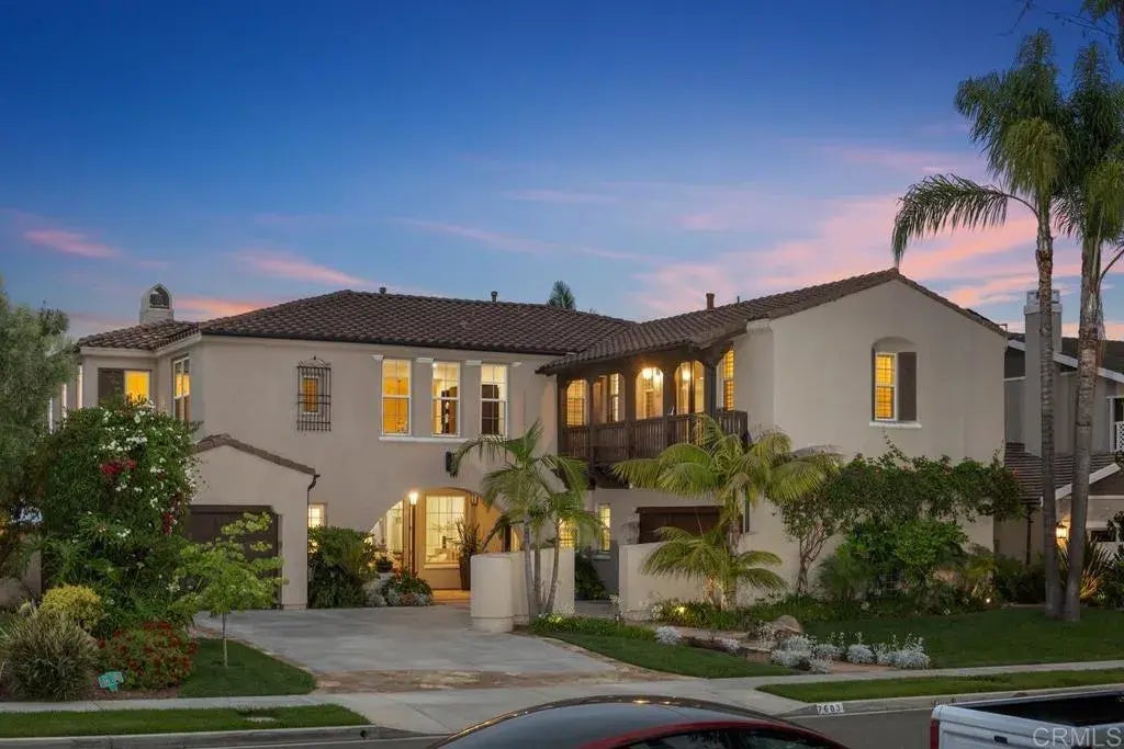 Welcome to 7603 Circulo Sequoia in the coveted La Costa Oaks South community of Carlsbad with endless panoramic views and resort-style living. This expansive 5-bedroom, 5-bathroom home seamlessly blends luxury and functionality with generous living spaces, a chefs kitchen, and a spacious primary retreat. Through the grand entryway into the sun-drenched interior with soaring ceilings, striking views, and a thoughtfully designed layout that flows seamlessly from formal living spaces to the heart of the homea chefs kitchen featuring a statement-making oversized island, granite countertops, stainless steel appliances including a Wolf range, two Bosch dishwashers!, KitchenAid double oven and fridge, beverage fridge, and plenty of built-in storage. The main level includes a guest suite with en-suite bath, plus a separate pool bath with direct outdoor accessideal for entertaining. Upstairs, the expansive primary retreat boasts a cozy fireplace, private view deck, dual vanities, soaking tub, and generous walk-in closet with custom built-ins. Three additional bedroomsone with a full bath and two sharing a Jack & Jilland a large bonus room round out the second floor. Outside, escape to your own private resort: a sparkling saltwater pool and spa with water feature surrounded by lush, tropical landscaping, built-in BBQ, fridge and outdoor fireplace, all framed by panoramic views. Garage features epoxy flooring, built-in cabinetry and overhead storage racks. Whole home water filtration system, owned solar, recently replaced HVAC system, and fresh paint throughout the interior are added