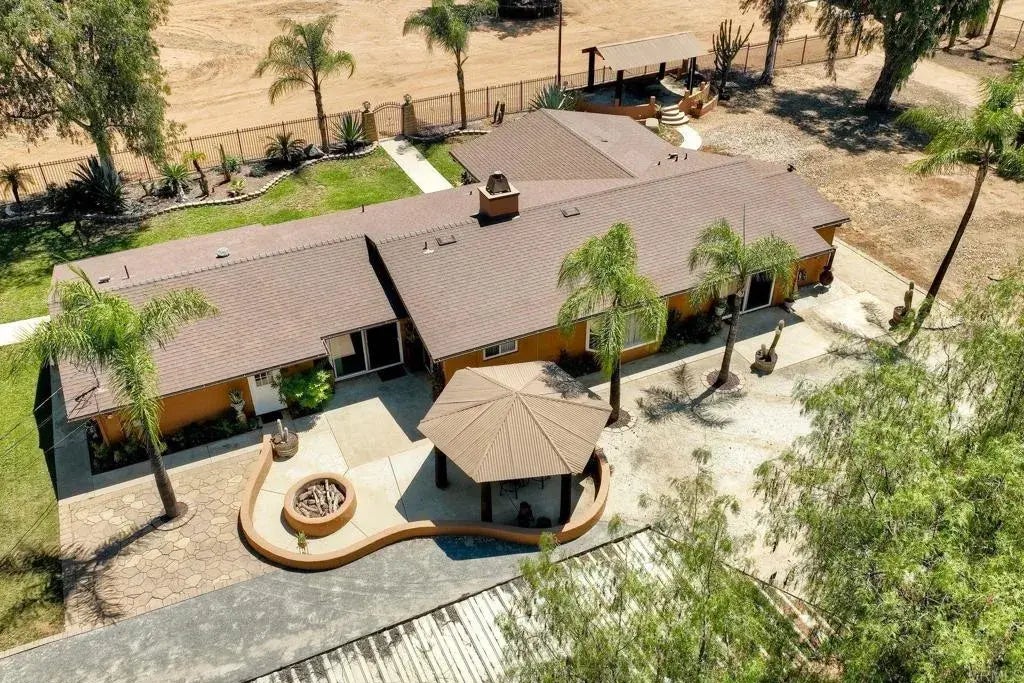 Price Reduced! Motivated Sellers! Centrally located spectacular horse property on a totally flat and double fenced 3 acres lot, former equestrian training facility, great potential and privacy. Well maintained single-story CA-ranch home has been updated with new roof, dual-pane windows and doors, newer baths, kitchen, 2 master suites, ceramic tile and carpet floors. Open home office, perfect for in-home business. 18 wheeler trucks easy access. Big 4,200 Sq.Ft. (70' x 60') metal barn/stable on concrete slab with electric power, room for many stalls, RV parking, wash-rack, turn-outs, off-road vehicle track, play-yard. Equestrian arena's fence got removed but could be built back, covered trainer-view deck. Great patio for entertaining along with huge front and rear yards. Patio w/ firepit. All electric home. Easy access to trails. Front 2 gates and one back gate access. Less than 5 min to Valley Center's schools, dining and shopping.
