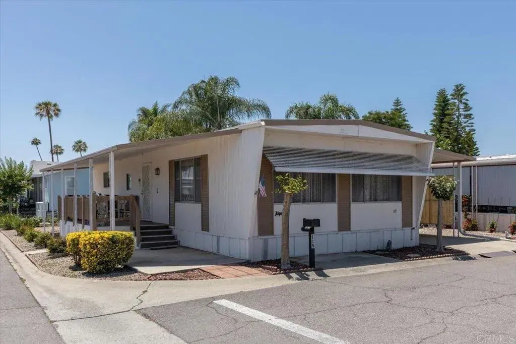Cute home located on a corner lot in Imperial Mobile Estates; a clean, well kept 55+ community with rent control. This home features Kitchen updates, a newer furnace & toilets, & some upgraded dual pane windows. The Primary Bedroom has two closets. Low maintenance yard with two citrus trees (Orange & tangerine). Spacious storage shed and parking for up to 3 vehicles in the carport. Home is conveniently located near one of two community pools. This beautiful 55+ park offers many social activities & amenities, 2 pools (one heated year around), spas, rec room, clubhouse, billiards, exercise room, game room and quiet rooms to enjoy meetings. RV parking available for a small additional fee. There is a bus stop at the entrance to the park for convenient transporation. Grocery stores, restaurants, and banks are all within walking distance.