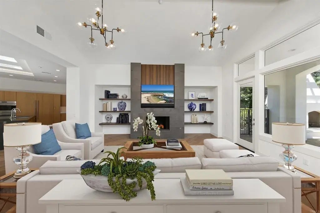 Luxurious single level Santaluz home which has been completely remodeled with custom finishes throughout. Enjoy this resort style home with sparkling pool and spa, outdoor fire pit to gather, BBQ Island with bar stools and fireplace to gather. Lots of areas to play including a fenced lawn area. The home has an expansive living room with temperature controlled glass wine cellar. The gourmet kitchen is open to the breakfast nook, family room and living room. There is a dedicated office and bonus room along with the 4 en-suite bedrooms. Expansive panoramic views. 4-car garage.