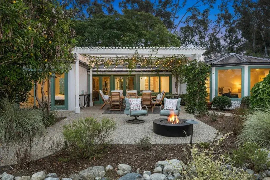 Welcome to Serenity Ranch. This stunning sun-drenched single story+ studio cottage on nearly two lushly landscaped acres is on one of the most prestigious and sought-after streets in the covenant. The home boasts 7 bedrooms and 3.5 baths in the main house with nearly 7000 square feet of living space, including three family room areas, an office, gym and a professional dance studio. The home has a unique layout with multiple distinct spaces and a flexible floor plan. The studio cottage + full bathroom is perfect for guests or multi-generational living! The new buyer benefits from a very low electric bill with 50 solar panels on the new roof, which was replaced last year at a cost of $125,000. The backyard is your own personal sanctuary with a pool, spa, tennis court (with lines painted for pickleball) and plenty of land for new development. The landscaping is meticulously cared for with fruit trees and a variety mature trees, plants and greenery virtually everywhere you look. Don't miss this rare opportunity to call this special property your home!