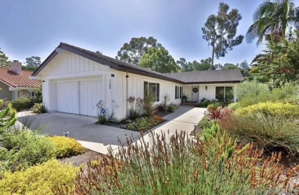 Discover coastal serenity in this updated single-story ranch home featuring 3 bedrooms and 2 full bathrooms across 1,525 square feet. Light-filled and inviting, the open layout showcases vaulted ceilings, European white oak floors, and a seamless indoor-outdoor flow perfect for relaxed Southern California living. The spacious kitchen includes an induction range and expansive windows offering garden views. Step outside to a beautifully redesigned wraparound patio with shade covers, a vibrant lawn, fruit and olive trees, and pollinator-friendly plantings like salvia and sage. A satellite-controlled irrigation system ensures low-maintenance, water-wise care. Owned solar system . The primary bedroom opens directly onto the garden, further enhancing the home's connection to nature. Additional upgrades include solid shaker-style interior doors with matte black hardware for a clean, modern finish. Situated in the sought-after Santas neighborhood, the property backs onto the Lomas Santa Fe Executive Golf Course and overlooks the San Elijo Lagoon. Solana Vista Elementary, San Dieguito Park, and Torrey Pines High School are all within walking distance. Timeless design, lush landscaping, and thoughtful updates make this home ideal for those seeking a peaceful, walkable beachside lifestyle in Solana Beach.