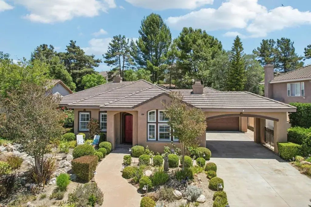 Sprawling single story with pristine curb appeal located in the highly sought-after gated community of Peppertree Park nestled on a quiet interior street surrounded by natural beauty and community charm. Step through the inviting entry that welcomes you with natural lighting, new LVP floors, elegant ceramic tile, and striking chandeliers that set the tone for this light-filled home with flowing formal and casual living spaces. The formal dining room greets you and flows seamlessly into the spacious living room anchored by a cozy fireplace, perfect for entertaining or relaxing. The open-concept kitchen exudes elegance with Travertine countertops, upgraded stainless steel appliances, double ovens, under-cabinet LED lighting, and an expansive center island with bar seating for seven under statement pendant lights. The kitchen overlooks the bright and airy family room, warmed by its own fireplace and lined with windows framing the lush backyard. The stunning primary suite is privately tucked away in its own wing at the back corner of the home where you will enjoys views of the serene backyard. The ensuite Tuscan-style bath features dual sinks, a soaking tub, separate shower, and a spacious walk-in closet. All four bedrooms offer built-in ceiling fans with the fourth bedroom, located at the front of the home behind double doors, offers ideal separation and functions beautifully as a home office, study, or flex space. Tons of upgrade throughout including crown molding, plantation shutters, and two solar dome skylights that fill the home with soft natural light throughout the day.