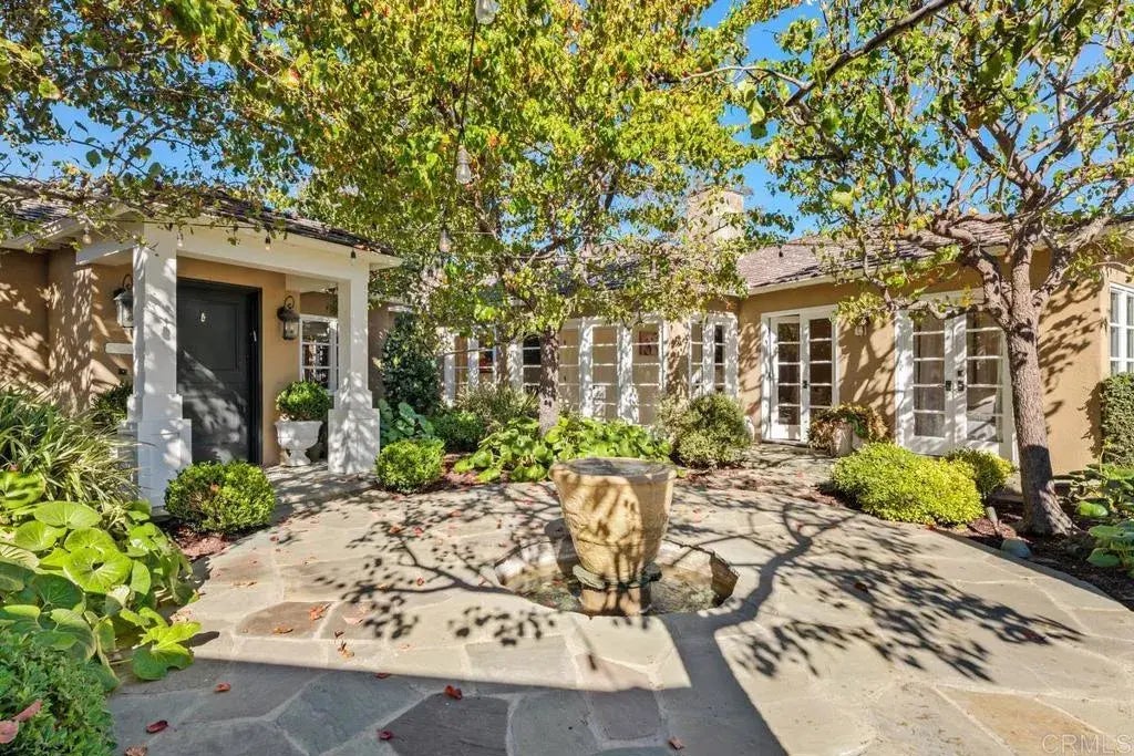 Ideally located on one of the most sought-after streets in the renowned Rancho Santa Fe Covenant, this enchanting single-level home seamlessly combines charm, sophistication, and functionality. Your private oasis awaits with an expansive backyard that borders acres of open space, impeccably groomed trails, and just a short walk to the Rancho Santa Fe Village, the acclaimed Roger Rowe Elementary and Middle schools and the Rancho Santa Fe Golf and Tennis clubs. You will immediately fall in love with the beauty of the lush landscape and the inviting private courtyard entry. The home boasts a freshly remodeled kitchen, and exquisite reclaimed maple floors throughout. It has a sun-drenched great room, and a gourmet eat-in kitchen, that seamlessly open onto the pool and entertaining areas with westerly views and gentle ocean breezes. The interior design includes 5 bedrooms, 4.5 baths and floor-to-ceiling windows and French doors that seamlessly caters to the indoor/outdoor living you can enjoy year-round in San Diego.