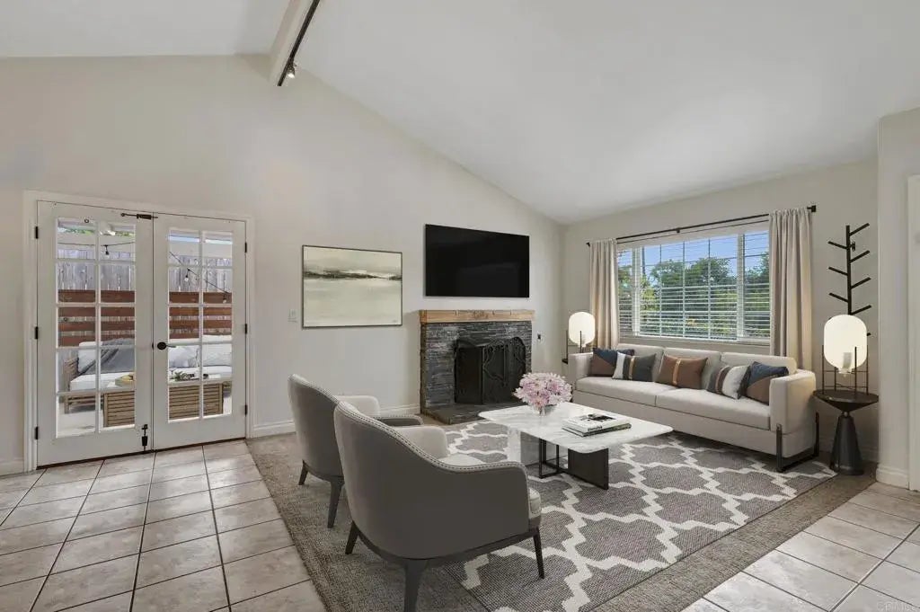 Welcome to 157 Belfast in Escondido, CA, where modern living meets comfort in this charming 3-bedroom, 2-bathroom home. Spanning 1,154 square feet, this residence offers a seamless blend of functionality and style, perfectly situated on a 4,791 square foot lot. Step inside to discover a spacious interior featuring vaulted ceilings that create an airy and open atmosphere. The family room invites you to unwind by the wood-burning fireplace, while the combination of carpet and tile flooring adds a touch of elegance to every step. The well-appointed kitchen comes equipped with essential appliances, making meal preparation a delight. Enjoy the comfort of air conditioning on warm days produced by the owned solar panels, ensuring a pleasant environment year-round Outside, the low-maintenance artificial turf in both the front and backyard offers a lush, green space without the hassle of upkeep. The covered patio is perfect for outdoor gatherings or a quiet retreat, providing a private outdoor oasis.