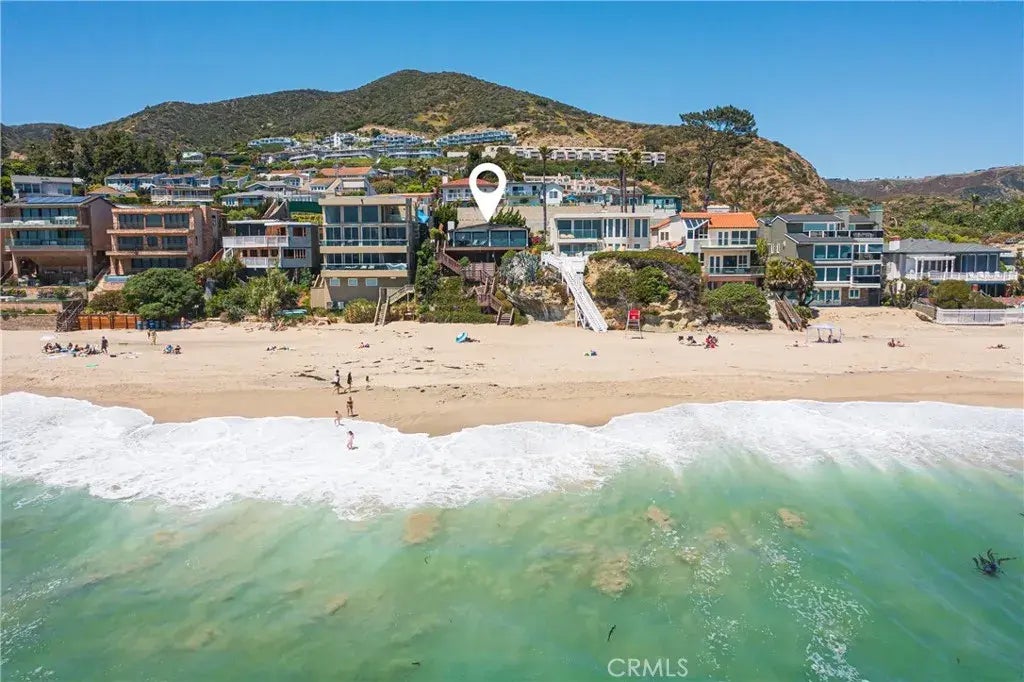 Unobstructed oceanfront views are just one of the countless rewards you will enjoy at this extra-light, exceptionally open Mid-Century Modern home in south Laguna Beach. Featuring private stairs to the sands of Aliso Beach below, the clifftop residence offers panoramic Pacific Ocean views that include breaking waves, sunsets over Catalina Island, and beaches to the north and south. A large front yard with a paver-finished driveway for ample guest parking and an attached one-car garage ensures appreciated privacy from the highway. A gate on the side of the garage opens to the completely private side entrance of the home, which extends approximately 1,536 square feet. Built in 1956, the two-bedroom, two-bath design showcases a recent remodel that maintains MCM style while incorporating modern finishes and fixtures. Commanding sit-down ocean views embellish the entire main living area, where a floor-to-ceiling bookmatched stone fireplace anchors the living room, and vaulted and beamed ceilings soar over the adjacent kitchen and family areas. Floor-to-ceiling windows and glass doors open to a wraparound deck with magnificent ocean views and plenty of room for entertaining. Indoor entertaining is equally impressive thanks to a magazine-caliber kitchen with quartz countertops, glass cabinetry, an island and separate peninsula with bar seating, a wet bar with built-in beverage cooler, and Viking appliances including a built-in refrigerator and six-burner cooktop. Vaulted ceilings continue in both bedrooms, and baths display custom quartz counters and shower surrounds. The primary