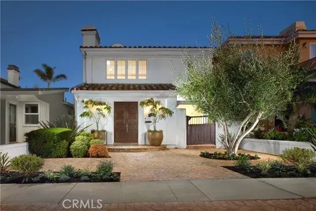 Less than 2 blocks from the Inspiration Point beach access, this custom home spans approximately 3,156 square feet, offering a light-filled, sophisticated living experience. Presented for the first time by its original owners, this five-bedroom, four-bathroom residence, set on a 30' wide lot, is designed with an optional 'lock-off' apartment, offering an additional income stream and promising an enviable coastal lifestyle. Stepping through elegant double doors, warmth and grandeur greet you, with a floor-to-ceiling fireplace anchoring the living area beneath soaring double-height ceilings. Beautiful tile flooring leads into a dining area where shiplap wood ceilings and a charming brick wall create a cozy ambiance, while French doors open to a serene patio ideal for enjoying ocean breezes. Thoughtfully updated for modern comfort and style, the interior features new carpets and fresh paint throughout. The main level includes a full bathroom and a bonus room, perfectly suited as a fifth bedroom with private outdoor access. Upstairs, four bedrooms include a spacious primary suitea private sanctuary with a cozy fireplace, two walk-in closets, and a luxurious bathroom featuring new Calacatta Prado Quartz countertops, matching backsplash, and updated floor tiles. A private balcony overlooks beautifully landscaped surroundings, offering a peaceful retreat. The three upper level secondary bedrooms are accompanied by two baths and a sitting room, complete with custom shelving, a wet bar, and a ladder to a versatile attic or playroom. With French doors that lead to private stairs down