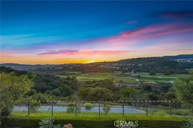 Premium lot on quiet cul-de-sac with beautiful panoramic sunset views of the golf course, hills and city lights. An entertainer's dream with a private backyard, custom spa and water feature, covered patio, built-in barbecue, bar, artificial turf, automated lighting and outdoor fireplace. Views are unmatched from this five bedroom, four bath home in the gated Talega community of Catania. A designer kitchen with stainless-steel appliances, dual-islands with modern white cabinetry, built-in refrigerator, six burner stove and fashionable granite and quartz countertops. An adjacent breakfast nook opens with French doors to the backyard. Enjoy the comfort of a large living room with fireplace and built-in entertainment center along with a formal dining room, bonus room and downstairs bedroom. The master bedroom includes a private balcony overlooking the canyon, an en suite bathroom with dual sinks, a soaking tub, separate shower and walk-in closet. Extensive crown molding, plantation shutters, custom window treatments & recessed lighting are throughout this exquisite home. Talega offers outstanding schools & amenities: 19 miles of hiking/biking trails, 4 community pools, clubhouse, sports courts, playground, lighted tennis, volleyball courts & nature reserve. The City of San Clemente has iconic beaches, a pier, shopping and amazing dining.