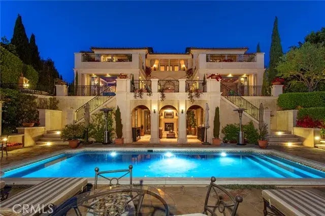 Welcome to the exquisite gated community of Pelican Hill in Newport Coast, where luxury and coastal living blend seamlessly. This exceptional home offers a truly elevated lifestyle, boasting endless views into the Pacific Ocean, captivating year-round sunsets over Catalina Island, and the twinkling lights of Newport Harbor, all the way up the scenic coastline to Palos Verdes. Spanning an impressive 9,920 square feet, this residence features 6 bedroom suites and a total of 8 bathrooms, providing ample space for both relaxation and entertainment. Situated on a sprawling 21,500 square foot front row parcel, this property offers unobstructed golf course and ocean views, providing a picturesque backdrop to your everyday life. As you step inside, you'll be greeted by impeccable craftsmanship and attention to detail throughout. Premium stone surfaces and masterfully crafted millwork adorn every room, creating an atmosphere of sophistication and elegance. The ocean view home office provides a serene and inspiring workspace, while the billiards room and wine cellar offer spaces for leisure and indulgence.Designed to seamlessly blend the indoors with the outdoors, this home features multiple balconies and loggias, inviting you to enjoy the coastal breezes and breathtaking views. The entertainment level opens up to the pool area, creating a harmonious flow for gatherings and relaxation. A full kitchen on this level ensures that hosting and entertaining guests is a breeze. Whether you're savoring a morning coffee on the balcony, hosting a poolside soire, or simply enjoying the peaceful
