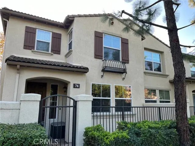 Discover this stunning end-unit townhome nestled in a highly desirable neighborhood, perfectly situated just steps from the community pool. A gated private patio welcomes you into a bright, open floor plan designed for both comfort and style. The main level features a spacious living room, a dining area, and a beautifully upgraded kitchen with granite countertops, stainless steel appliances, and rich wood cabinetry. Additional conveniences include a powder bathroom, a dedicated laundry room, and direct access to a finished 2-car garage with built-in storage. Laminate flooring, recessed lighting, and built-in surround sound speakers add a touch of modern sophistication throughout. Upstairs, youll find three well-appointed bedrooms and a versatile loft space, ideal for a home office with its built-in desk. The primary suite is a private retreat, complete with soaring ceilings, a ceiling fan, a walk-in closet, dual vanities, a walk-in shower, and a separate water closet. The community offers resort-style amenities, including a sparkling pool and spa, a relaxing barbecue area with lounge seating, and a playground for outdoor fun. This exceptional townhome combines modern design, premium location, and unbeatable amenities. Dont miss your chance to call this Irvine gem your own!