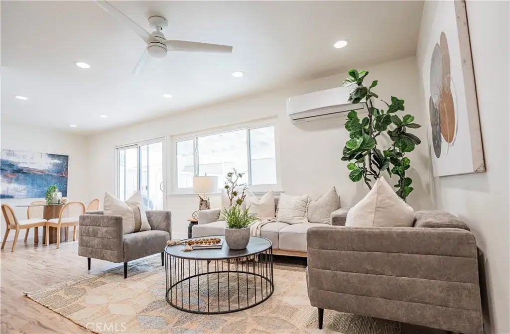 This stunning, completely remodeled, one-story, two-bedroom and one bath condominium home has one of the best locations in the Bradford Place, a quiet end-unit with views of the park and close to the community pool. As you walk into the living area, you will find all new flooring throughout, all new kitchen with stainless sink, refrigerator, oven, microwave and dishwasher, and gorgeous cabinets with recessed lighting. The remodeled bathroom has a new sink and vanity, and a large walk-in shower with designer tiles and glass enclosure. There's a new heater and air conditioner unit in the living room and ceiling fans throughout. All new landscaping in the spacious private courtyard patio, perfect for BBQs and outdoor dining. The full-sized two-car garage has a washer and dryer, new water heater and finished walls with recessed lighting with an epoxy floor. It's much better than move-in ready, and it won't last long.