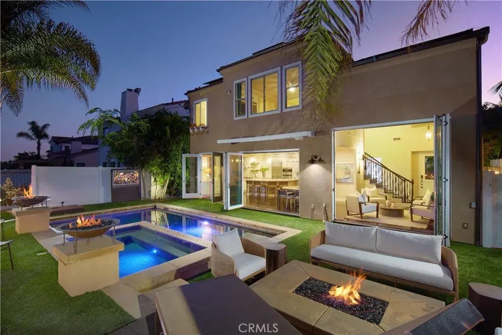 Welcome to luxurious coastal living in the private, gated community of Mandalay in San Clemente. This impeccably updated and enhanced home exudes flawless style and detail. Upon arrival, youll be greeted by a private, gated courtyard sitting area complete with a tranquil water fountain. Make your way through the custom glass front door into the spacious lower level, featuring a separate office, living room, dining area, and kitchen, all with soaring 10-foot ceilings and abundant storage. The downstairs bedroom boasts a walk-in closet and an adjacent bathroom with a walk-in shower, perfect for multi-generational living. The open-concept living, dining, and kitchen areas create a seamless great room effect. Just outside the upgraded great room doors, you'll find a spacious backyard with a solar-powered pool and a 12-person jacuzzi. The gourmet kitchen is a chefs dream, featuring granite countertops, a separate pantry, stainless steel appliances, a 6-burner stove, a Viking convection oven, and a built-in Viking microwave. Ascend the stairs to the second-level landing, which offers additional storage. The primary suite includes a walk-in closet and a beautifully renovated bathroom (2020) with double sinks, a separate shower and tub, and coastal and hill views. Two additional bedrooms upstairs share a full dual bathroom. Other features include wood flooring throughout, owned solar panels, a newer roof (2018), re-piping, a newer water heater (2019), and a three-car garage with Smart garage door openers and ample storage space. The front and rear yards are adorned with drought-res