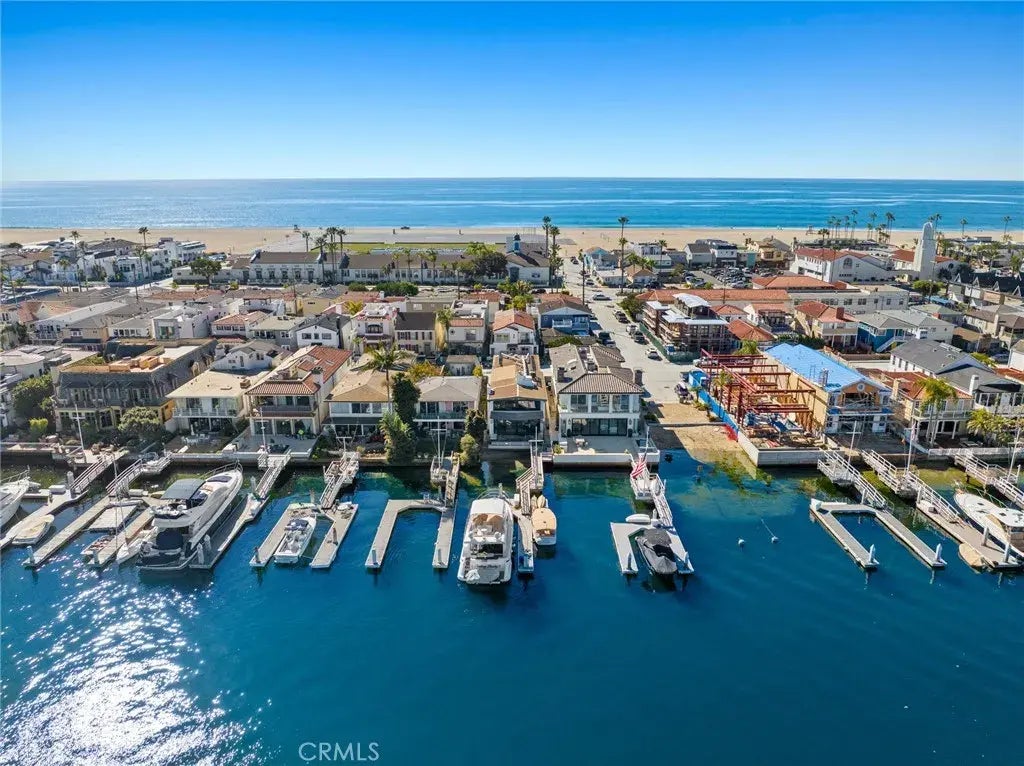 Positioned as a terrific harbor front value with long-term upside potential, this retro-cool Mid-Century Modern bay front home designed by celebrated architect Bill Blurock embraces waterfront living with a stylish nod to the design elements of the 1960s. Timeless clean lines, large windows, and an open interior layout seamlessly merge the indoor and outdoor spaces, offering panoramic views of Newport Harbor. Underscored by a neutral interior color palette and uncluttered style, the home is characterized by the use of natural materials including wood beam ceiling detail, concrete floors, and a stone fireplace. Walls of glass open to a waterfront patio perfect for al fresco dining and enjoying the active harbor views. The private dock accommodates a vessel of approximately 56' and the side-tie is perfect for a Duffy boat and water toys. With four bedrooms, four bathrooms, and an office-loft, there is room for everyone to enjoy funs times together on the water. The primary suite with its separate sitting area delights in endless views of the bay, and twinkling city lights. Characterized by a minimalist exterior facade, the home blends form and function, offering a timeless retreat that celebrates the beauty of waterfront living. Conveniently positioned Mid-Peninsula just a short stroll, bike or golf cart ride from the myriad shops and restaurants that the Balboa Peninsula is known for. An amazing bay front lifestyle opportunity.