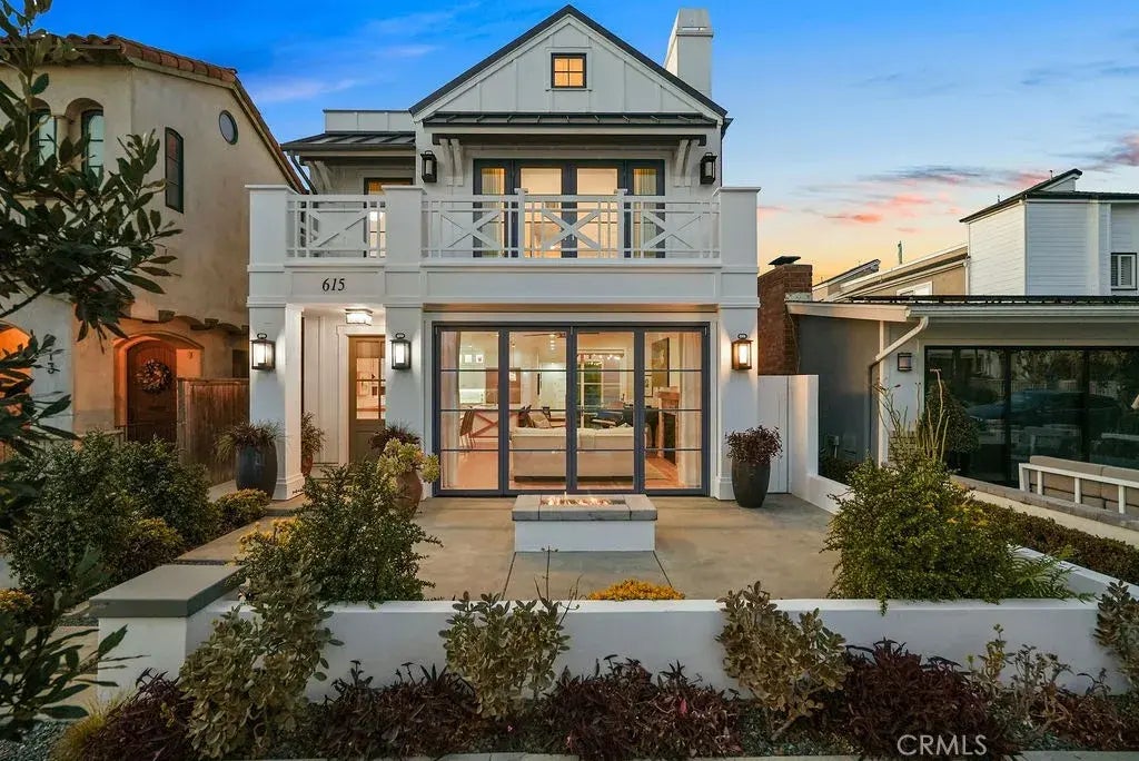 Discover the epitome of refined coastal living at 615 Begonia Ave in Corona del Mar. Completed in 2018 and recently refreshed, rarely lived-in, and meticulously maintained, this exceptional property exudes a modern, elegant, and coastal feel with a touch of Cape Cod flair. Crafted by Building Worx, Inc. and designed by Chris Brandon of the renowned Brandon Architects, the exterior stuns with gorgeous blue doors and windows, while the light, white, and bright aesthetic flows throughout the property. Step inside and enjoy the abundance of natural light that illuminates the open floor plan. Enriched by a fireplace and high-end finishes such as wide plank wood floors, the spacious living area flows seamlessly into the gourmet kitchen, featuring top-of-the-line appliances such as a Thermador 6-burner range, and ample counter space with a huge center island, perfect for entertaining guests. This area opens to multiple outdoor spaces, with a patio in the front of the home and La Cantina doors opening to a private outdoor courtyard just off the kitchen, on the side of the home. Relax and unwind upstairs in the first of two guest bedrooms or the serene primary suite. This spa-like suite boasts vaulted ceilings, a balcony perfect for relaxation, a spacious walk-in closet, and a luxurious bathroom with a large shower, soaking tub, and dual sinks. On the third floor you will find another guest bedroom with an ensuite bath, and an inviting rooftop deck. Here, you'll enjoy panoramic vistas of sparkling city lights, swaying palm trees, and the picturesque Newport Coast while soaking up th
