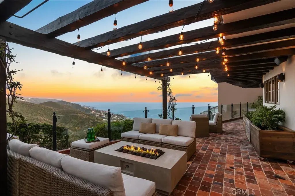 This European-inspired villa is unlike any other. Just one mile from Southern California's best beaches, this enchanting retreat whispers stories of timeless elegance with authentic 300-year-old French tiles and other exquisite French touches throughout. Rebuilt in 2008 and refreshed in 2024, the home seamlessly blends classic allure and modern living with its 3 beds, 4 baths, and a media room that can easily be converted to a fourth bedroom. A privacy wall encircles the property, creating a secluded sanctuary. The tranquil front courtyard with a water feature welcomes you, while the backyard unveils breathtaking ocean views, a fire pit for starlit evenings, alfresco dining space, and a sprawling terraced garden. Inside, a stunning, unique, and romantic interior awaits. The formal living room beckons with a gas fireplace, while custom details like the iron staircase and mahogany front door whisper of bespoke artistry. The open family room and chef's kitchen, with marble counters and open shelving, frame south-facing ocean vistas just beyond the lush Laguna hillsides. A French La Cornue CornuFe 110 range, Sub-Zero fridge, Miele dishwasher, warming drawer, and center island complete this gorgeous kitchen. Upstairs, you will discover three ensuite bedrooms, a laundry room, and the versatile media room. The primary suite boasts canyon and ocean views and a luxurious bath with a glass shower, soaking tub, and a massive walk-in closet. The entire experience is elevated by details and upgrades such as hand-hewn beams, a wine fridge and bar, Sonos sound, a 2-car attached garage wit
